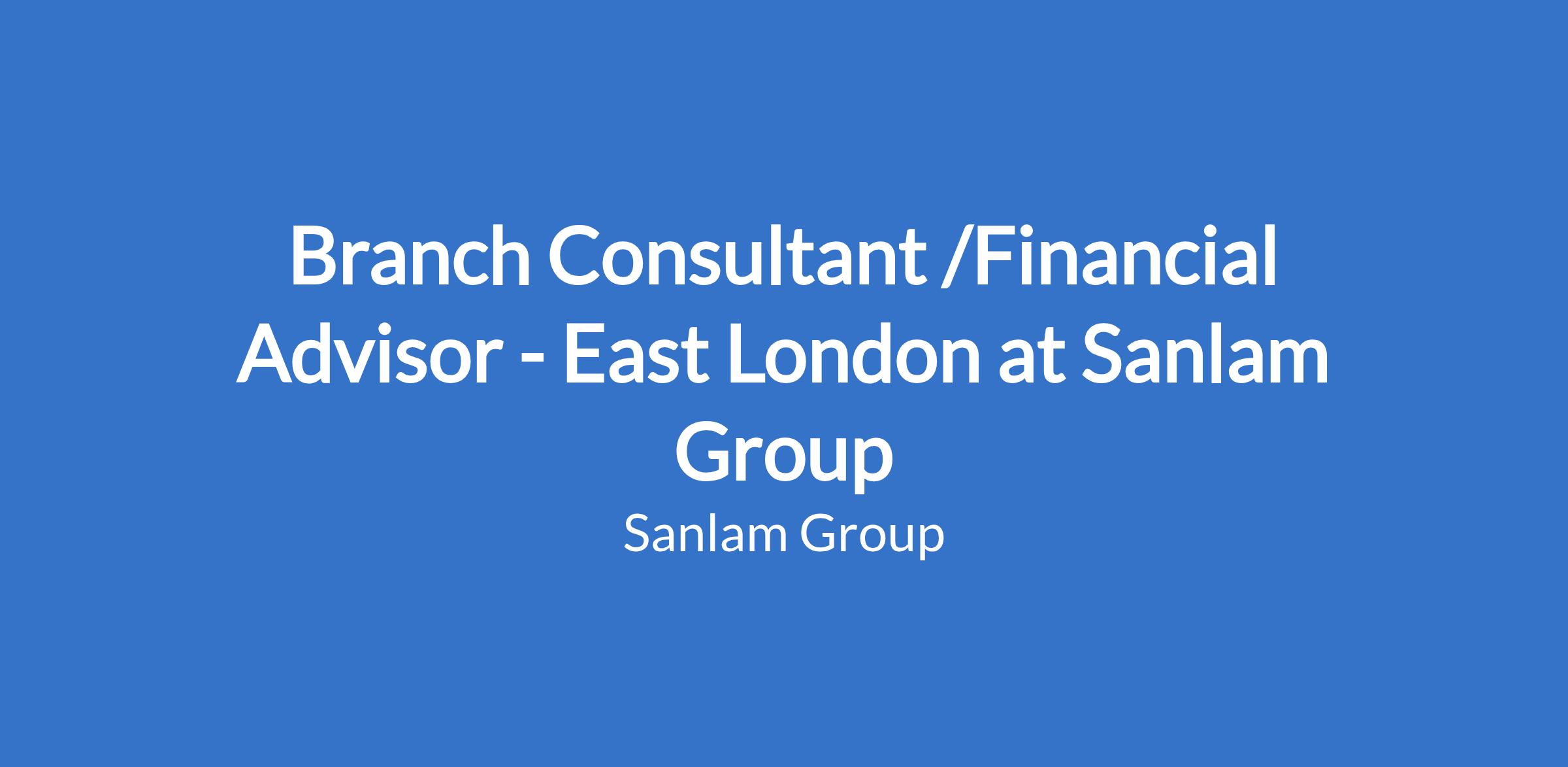 Branch Consultant /Financial Advisor - East London at Sanlam Group