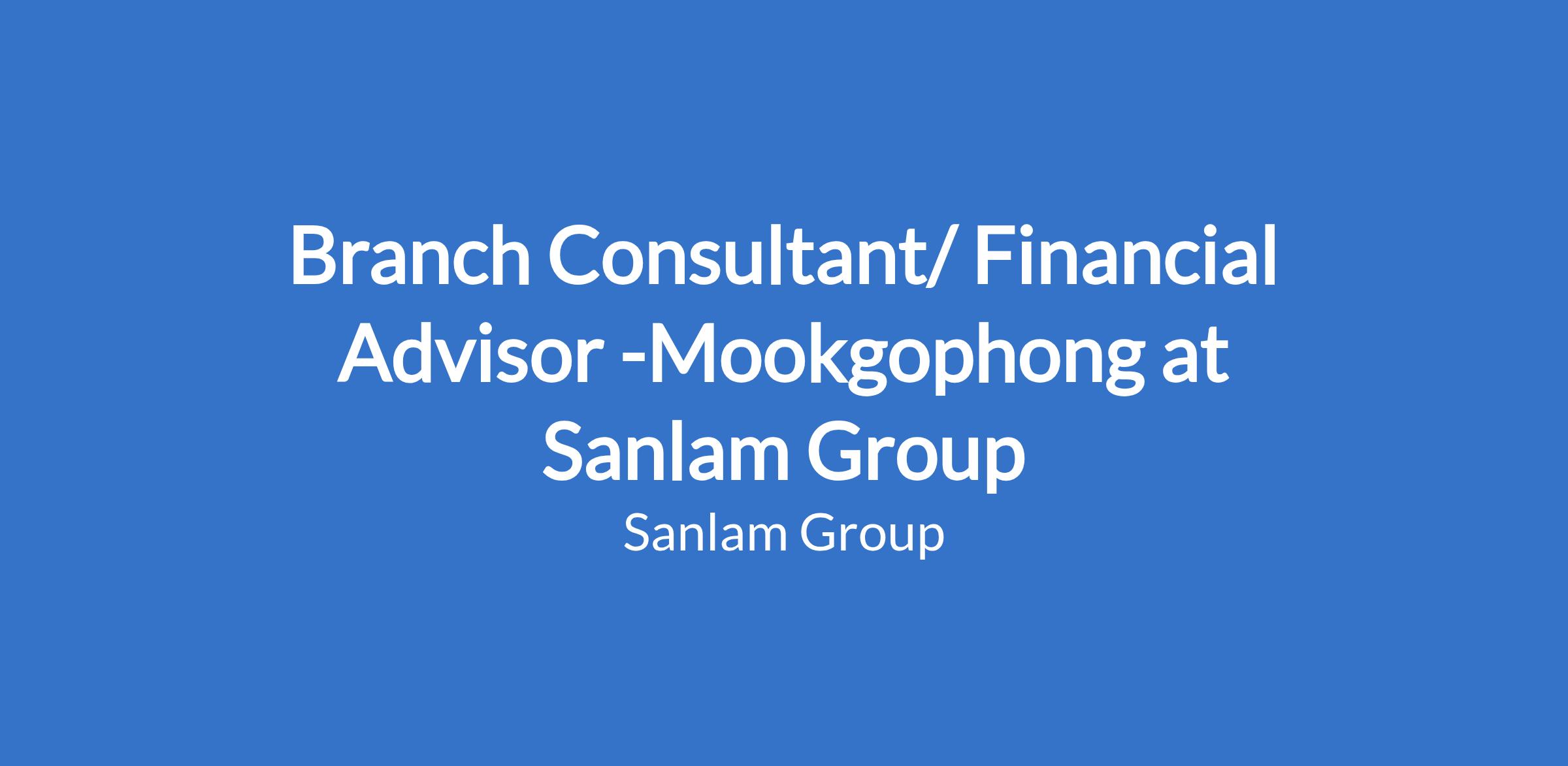 Branch Consultant/ Financial Advisor -Mookgophong at Sanlam Group