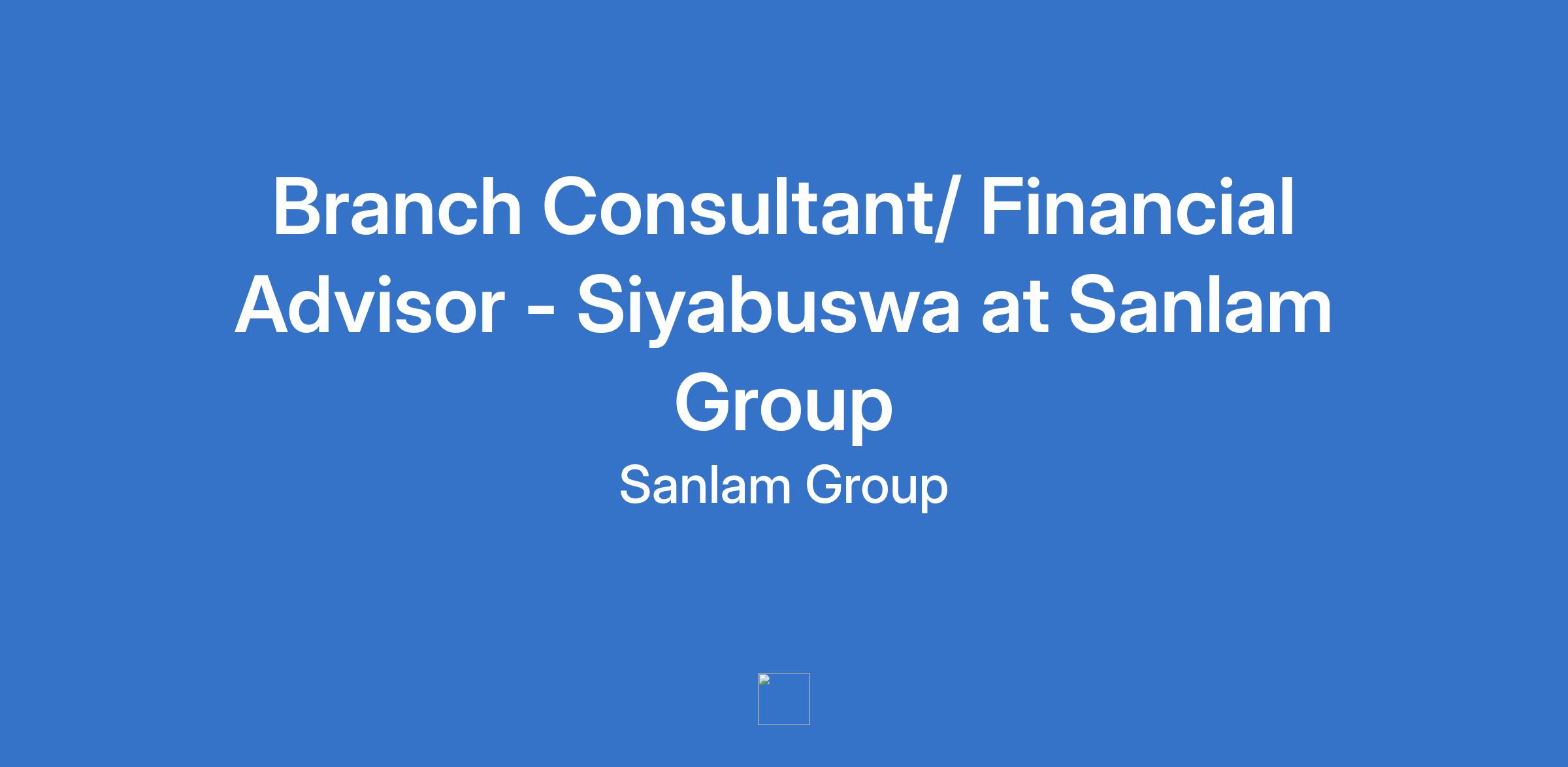 Branch Consultant/ Financial Advisor - Siyabuswa at Sanlam Group