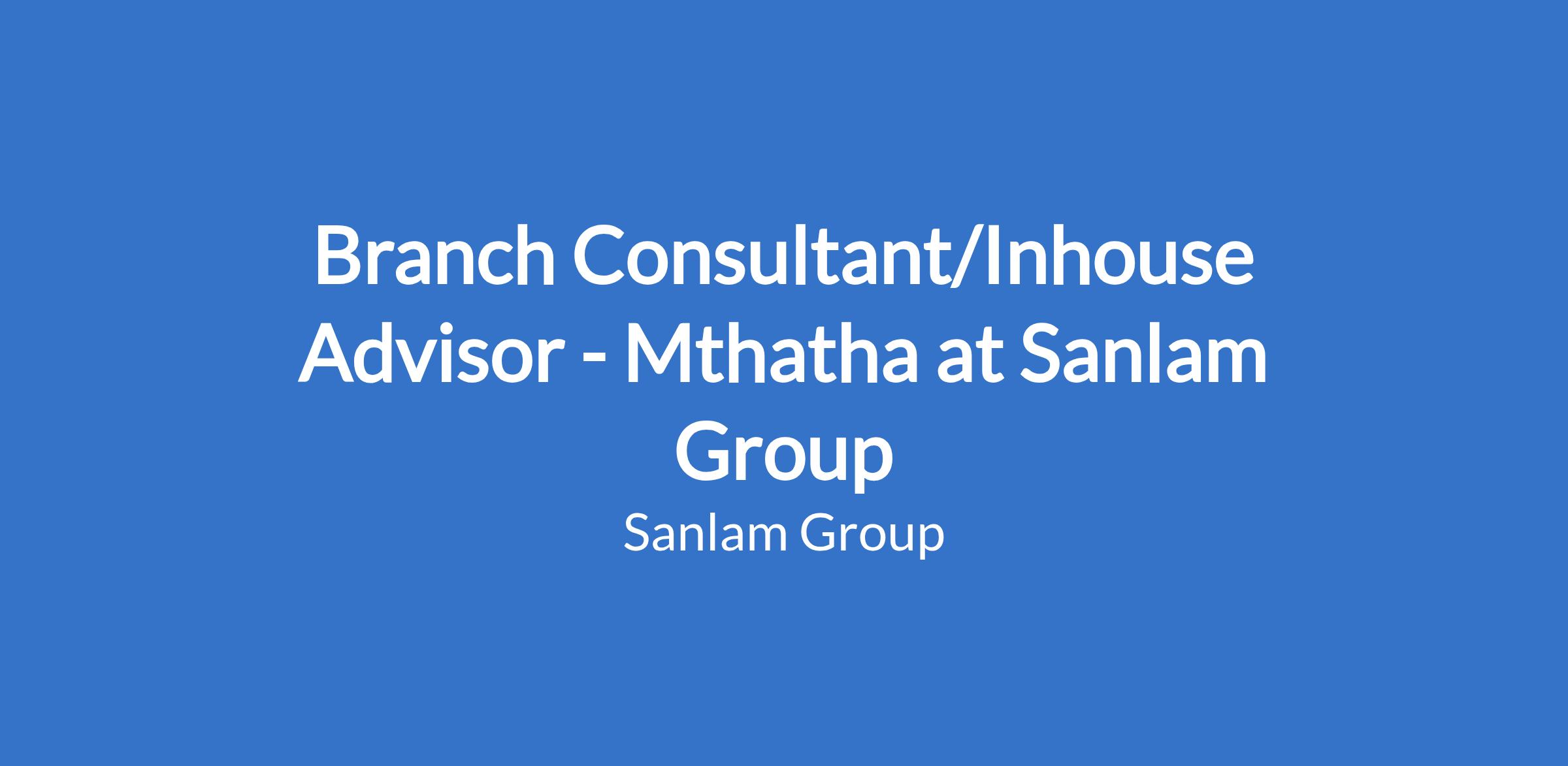 Branch Consultant/Inhouse Advisor - Mthatha at Sanlam Group