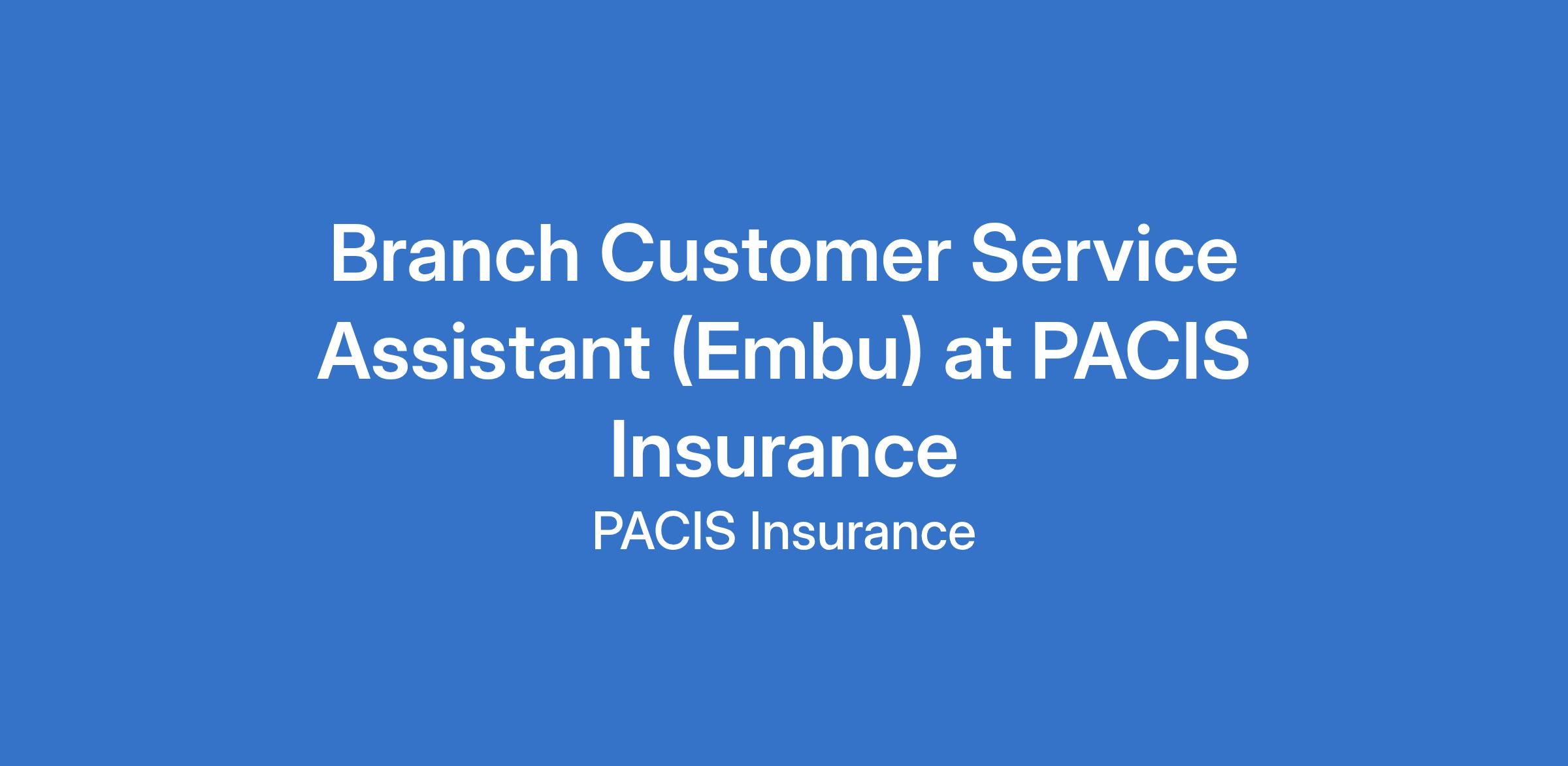 Branch Customer Service Assistant (Embu) at PACIS Insurance