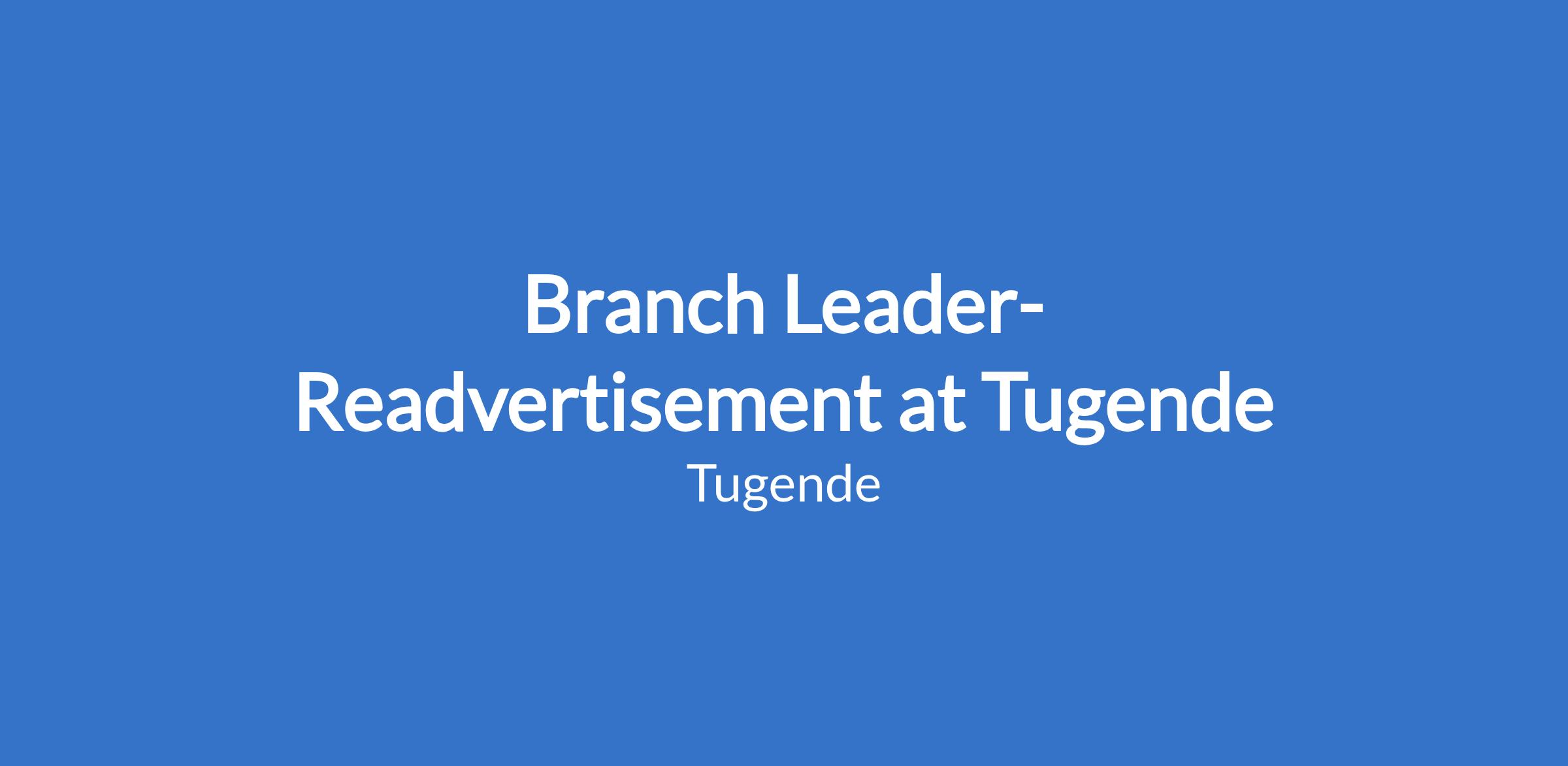 Branch Leader-Readvertisement at Tugende