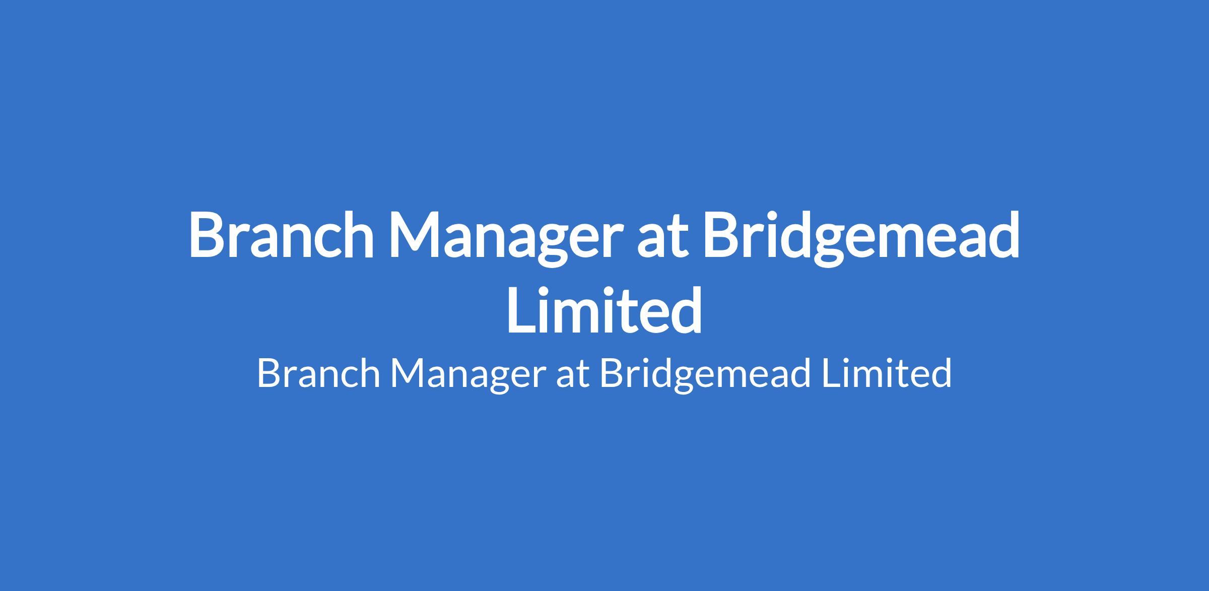 Bridgemead Limited is recruiting to fill the position of: Branch Manager. The position is located in Victoria Island, Lagos State. Interested candidates should possess a Bachelors Degree in Business Administration, Finance, Economics, or related field (MBA is an added advantage) with 57 years of banking experience, with at least 3 years in a supervisory or managerial role.