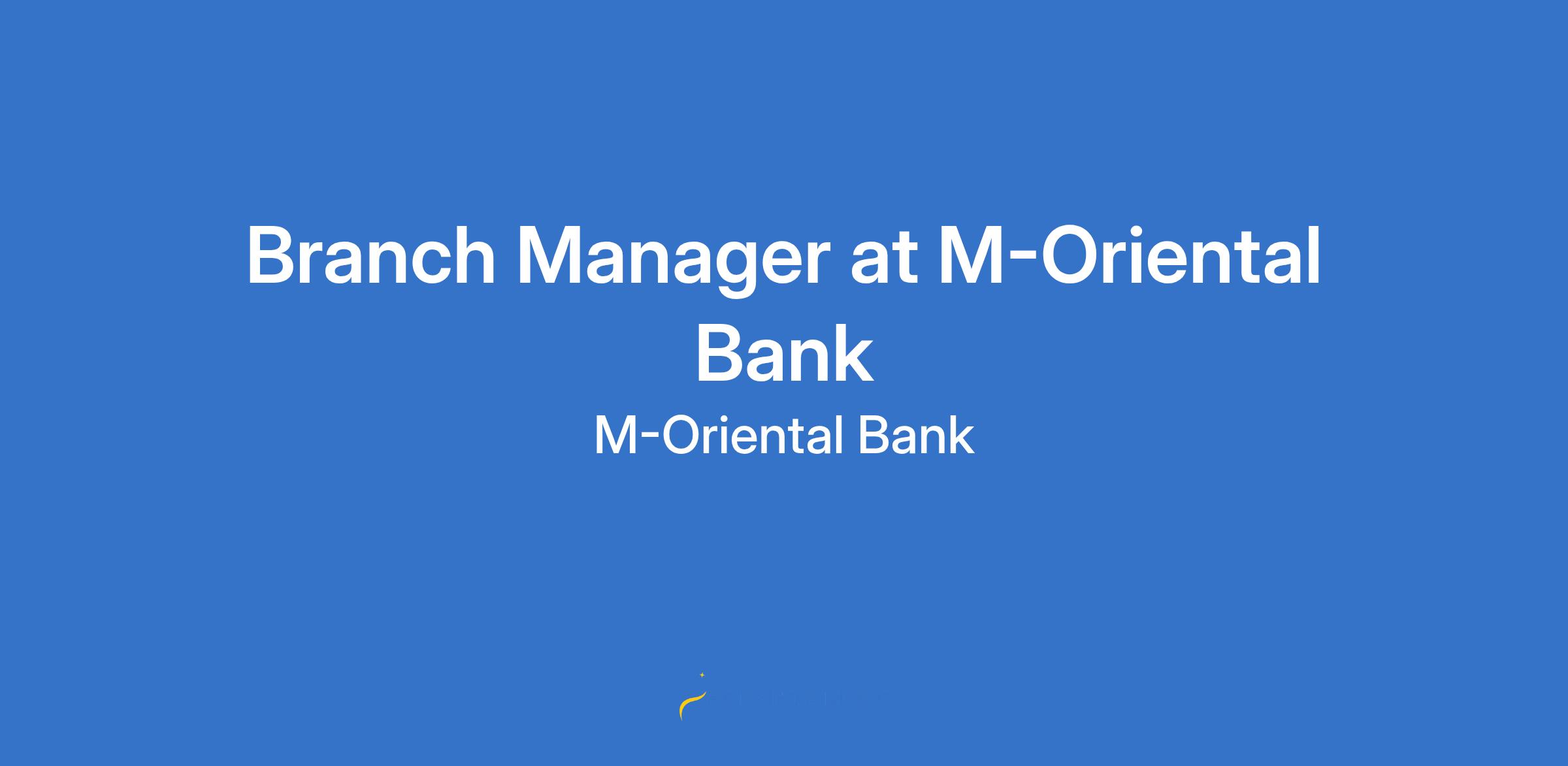 M Oriental Bank is looking for dynamic, driven, and experienced Branch Managers to lead our teams and drive outstanding branch performance. If you're passionate about business growth, delivering exceptional customer experience, and building high-performing teams in a supportive and collaborative environment, this opportunity is for you.