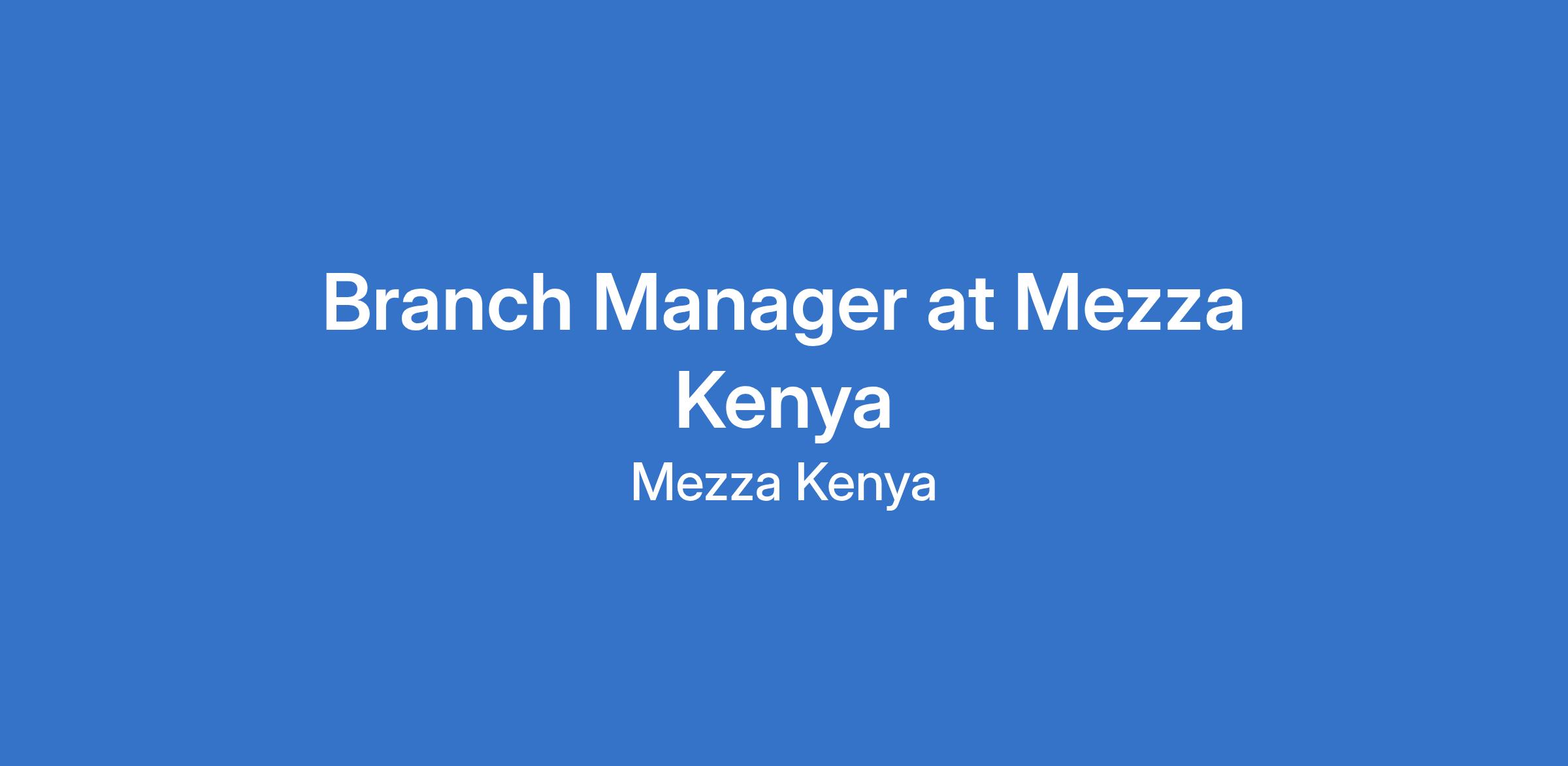 Branch Manager at Mezza Kenya