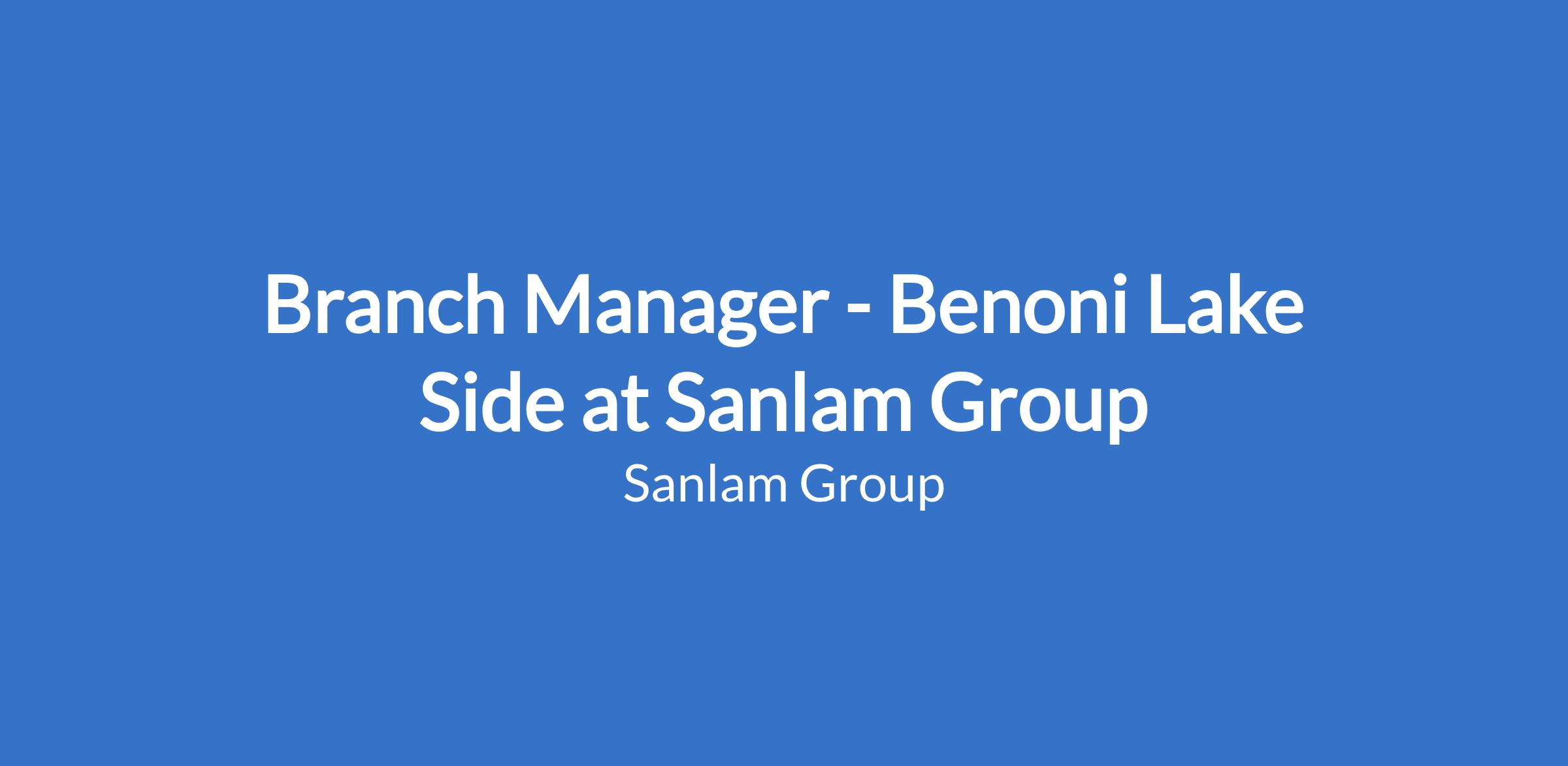 Branch Manager - Benoni Lake Side at Sanlam Group