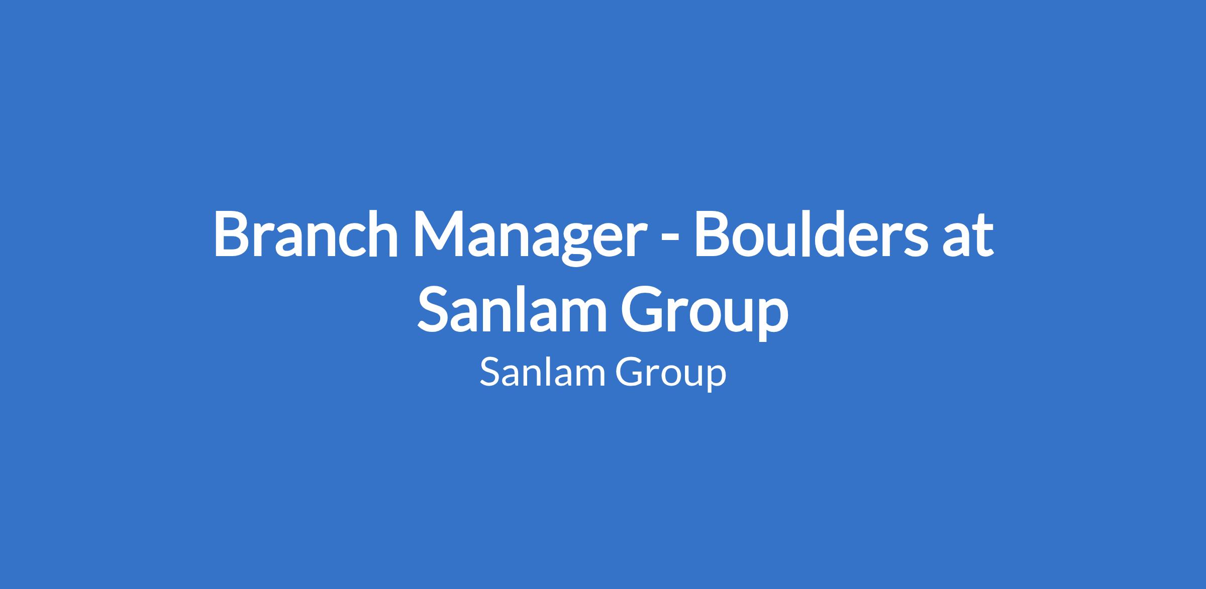 Branch Manager - Boulders at Sanlam Group