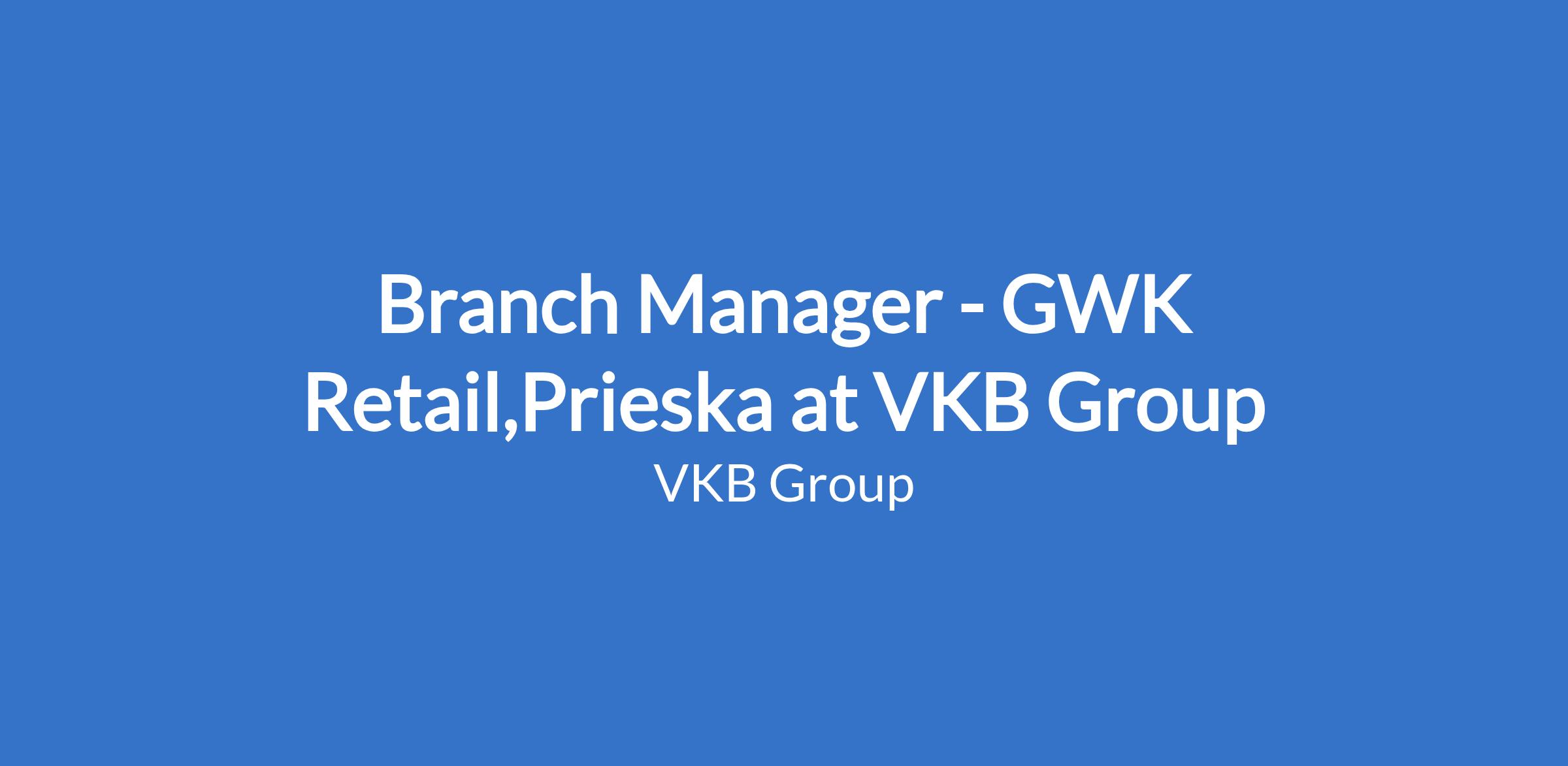 Branch Manager - GWK Retail,Prieska at VKB Group