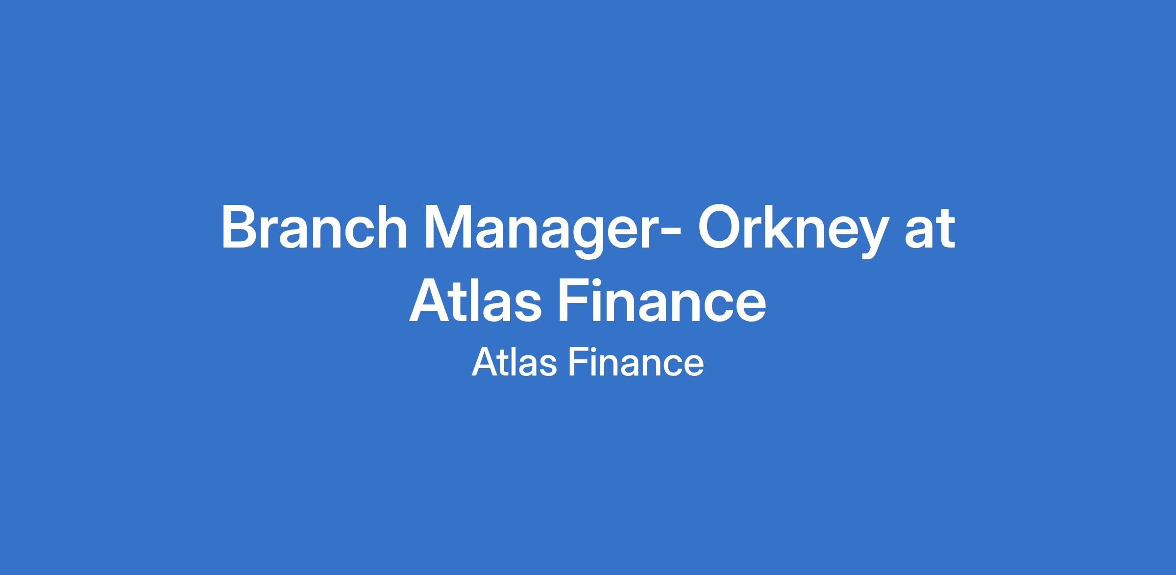 Branch Manager- Orkney at Atlas Finance