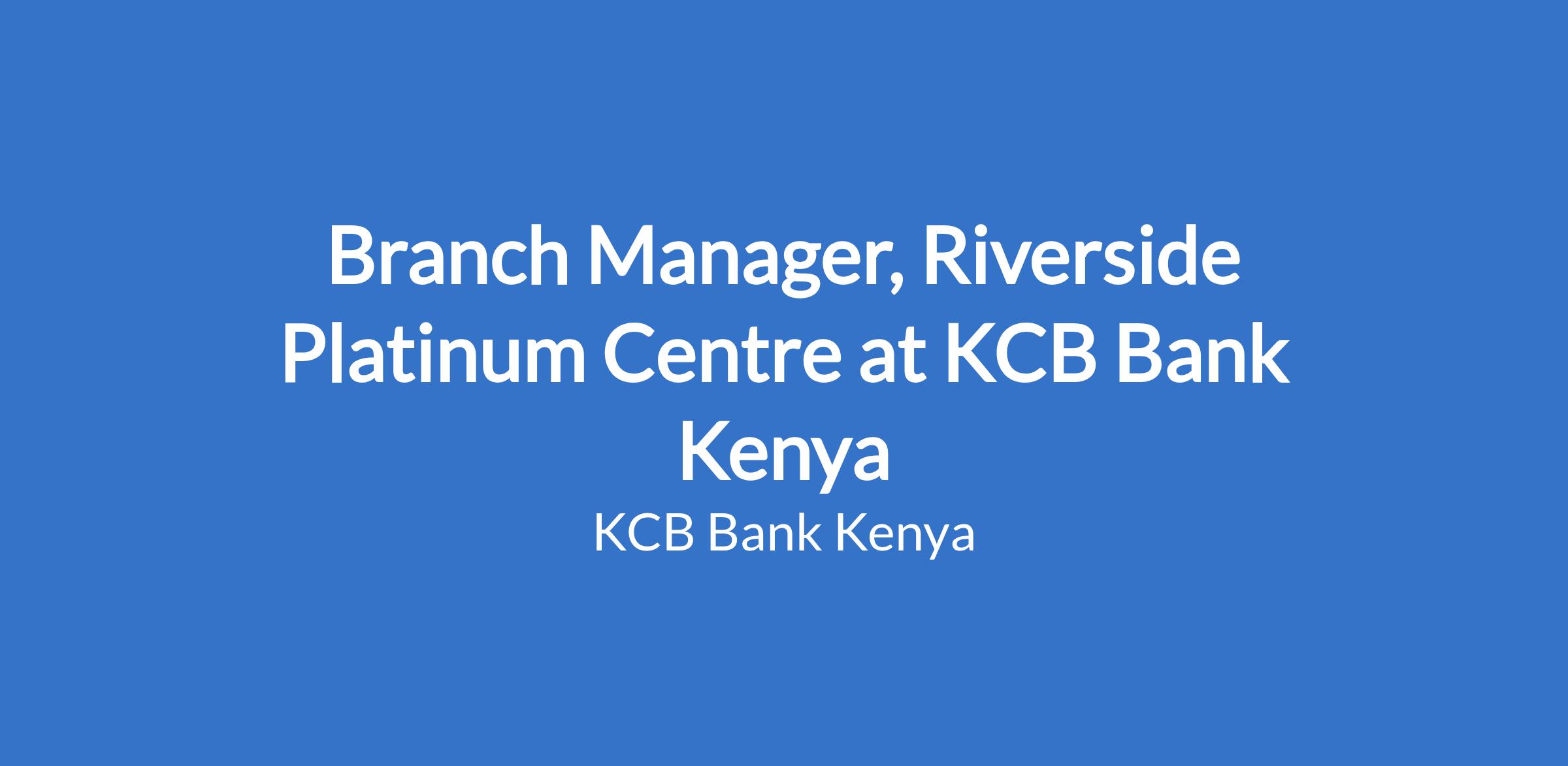Branch Manager, Riverside Platinum Centre at KCB Bank Kenya
