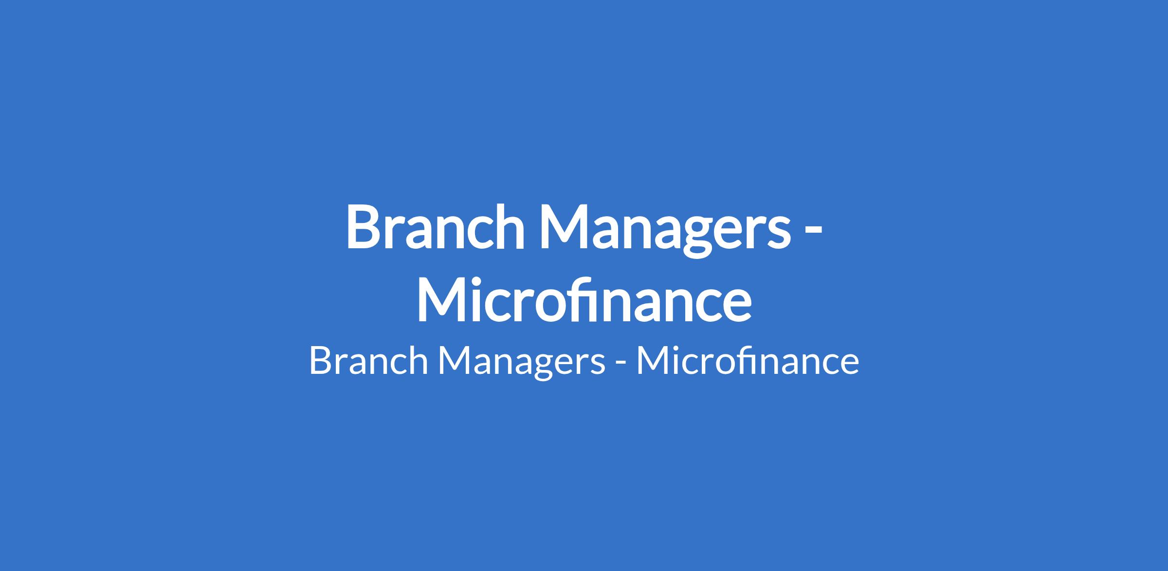 Branch Managers - Microfinance