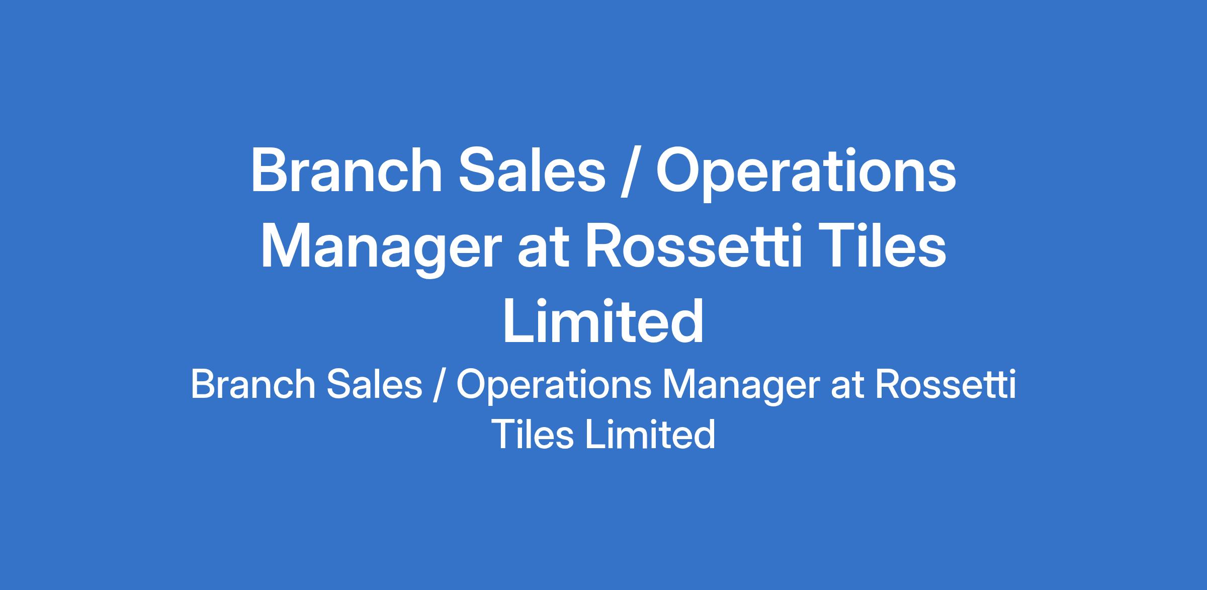 Rossetti Tiles Limited is recruiting to fill the position of: Branch Sales / Operations Manager. The position is located in Lekki, Lagos State. Salary: N200,000 monthly. Interested candidates should possess an HND or University / MSc Degree in any Management or Social Science course with 5 - 8 years experience in sales.