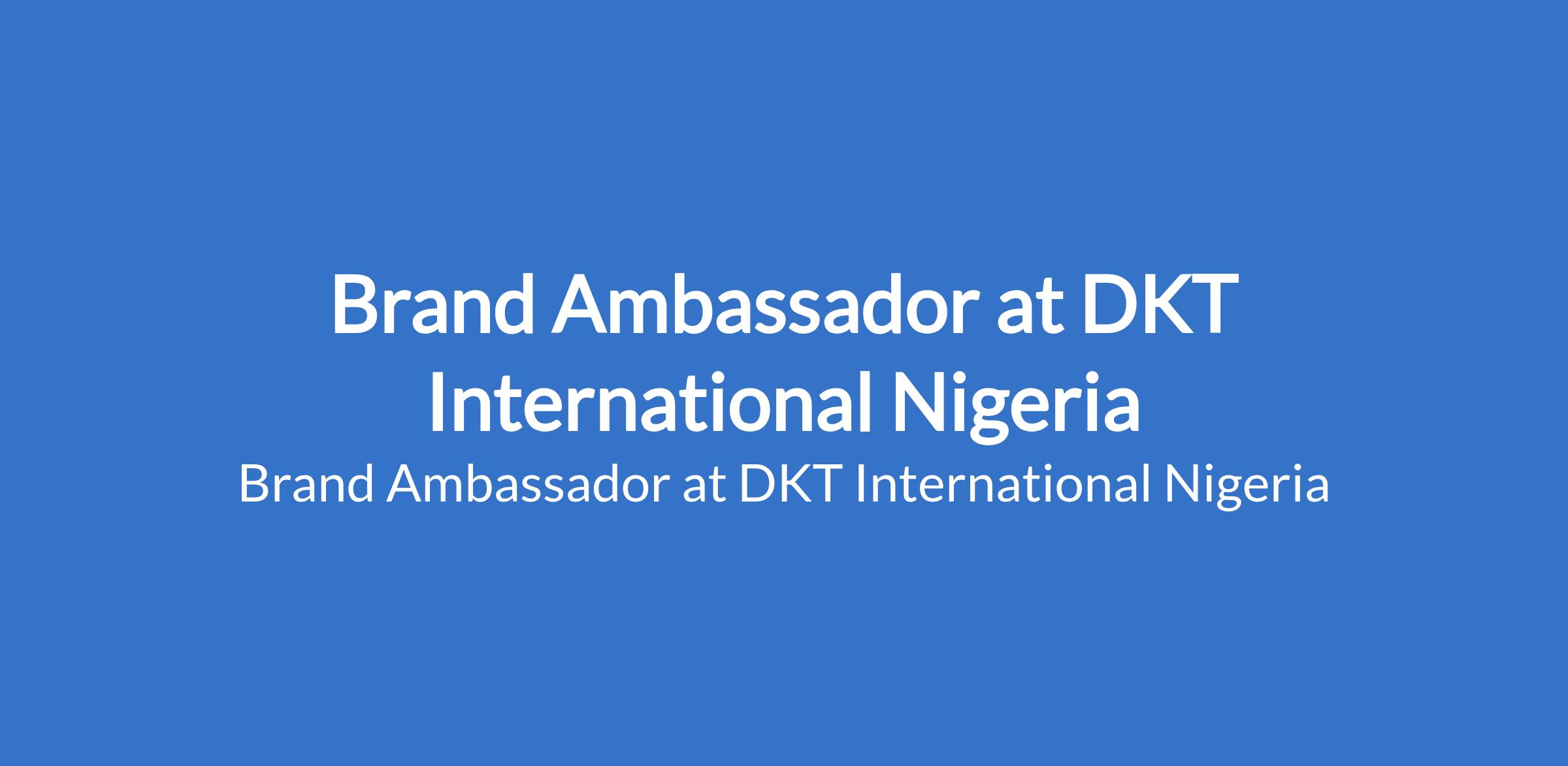 DKT International Nigeria is recruiting to fill the position of: Brand Ambassador. The position is located in Lagos State. Interested candidates should possess a minimum of a post-secondary certificate or equivalent qualification.