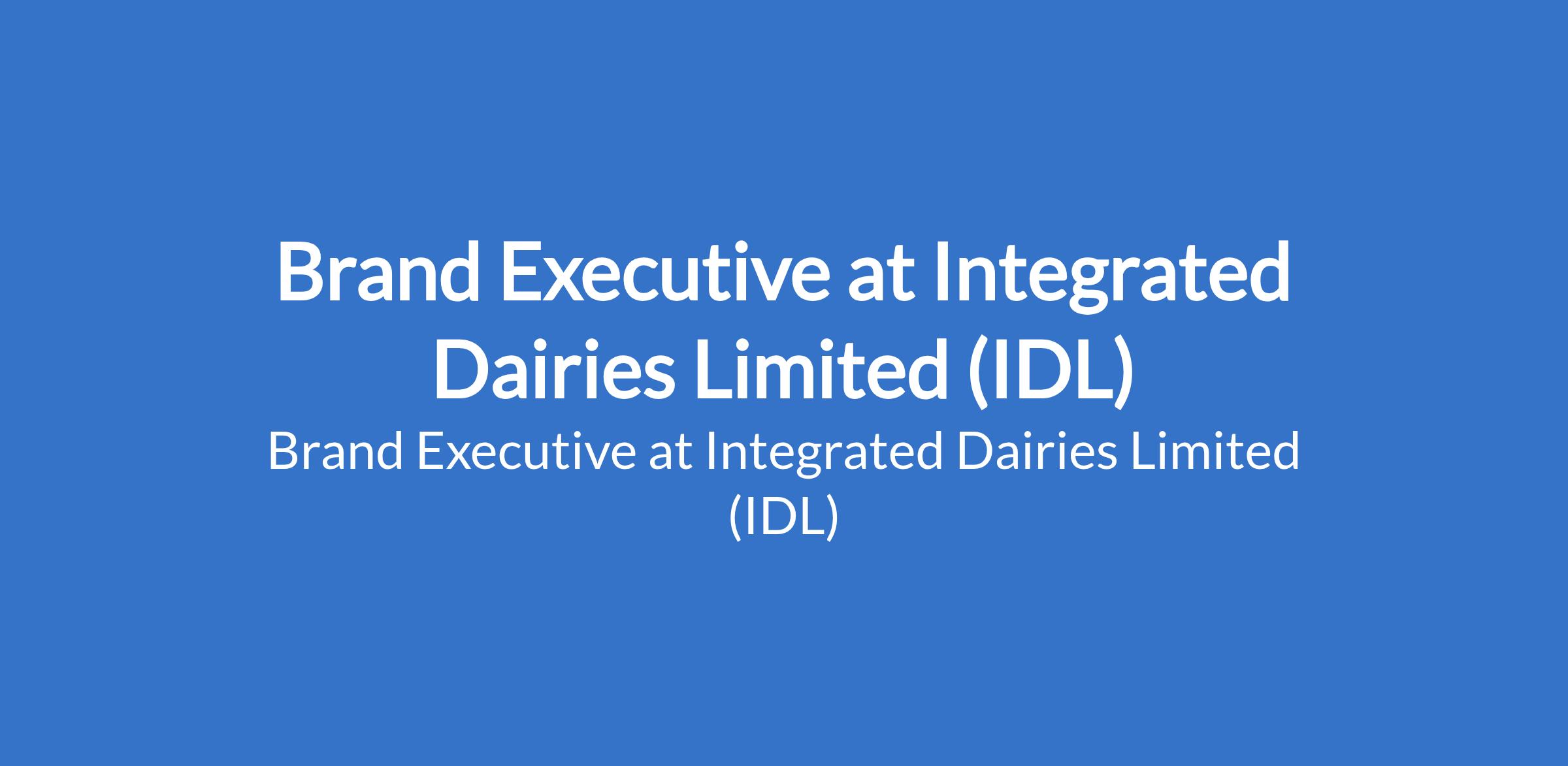 Brand Executive at Integrated Dairies Limited (IDL)