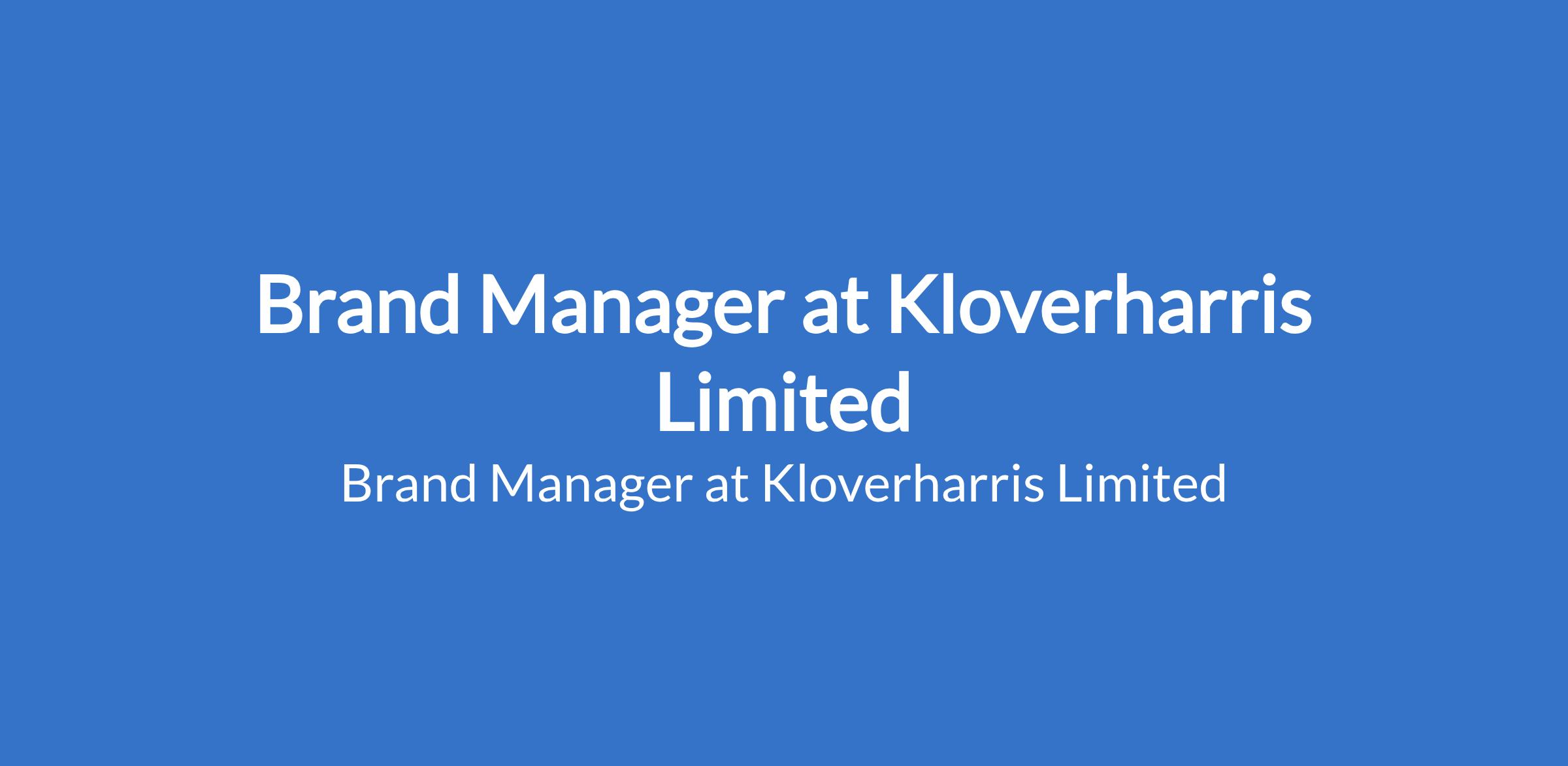 Kloverharris Limited is recruiting to fill the position of: Brand Manager. The position is located in Victoria Island, Lagos State. Salary: N600,000 - N1,200,000 / month. Interested candidates should possess relevant qualifications with 5 8 years experience in brand management, category management, or FMCG marketing.
