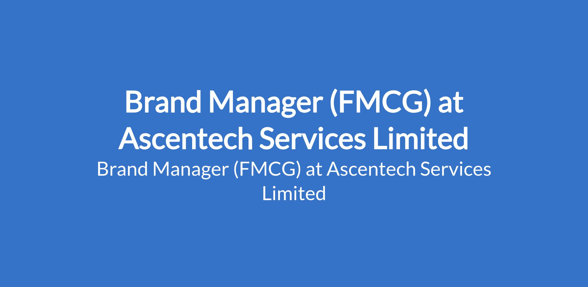 Ascentech Services Limited is recruiting to fill the position of: Brand Manager (FMCG). The position is located in Ikeja, Lagos State. Salary: N800,000 - N1,000,000 monthly. Interested candidates should possess a minimum of B.Sc Degree in a related field, MBA in Marketing will be an added advantage with 4 years experience.