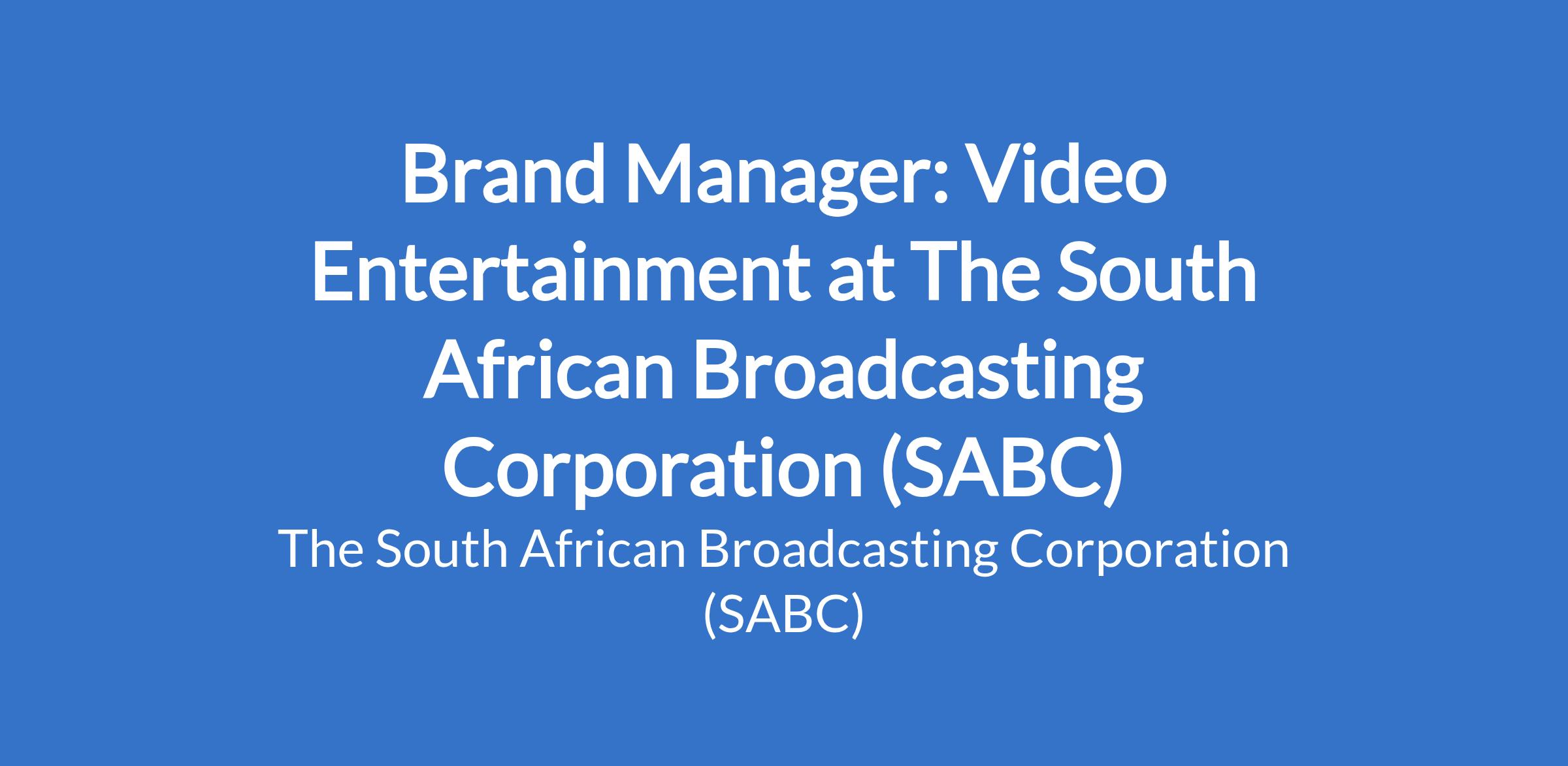 Reporting to Marketing Manager-Video Entertainment : To develop, implement and evaluating of channel brand, marketing strategy and national campaigns and well as public relations. Contribute to the delivery of best-practice and innovative brand marketing and communication strategies within Video Entertainment, and will work to ensure that the respective SABC Video Entertainment platform is promoted and positioned to drive its platform objectives.
