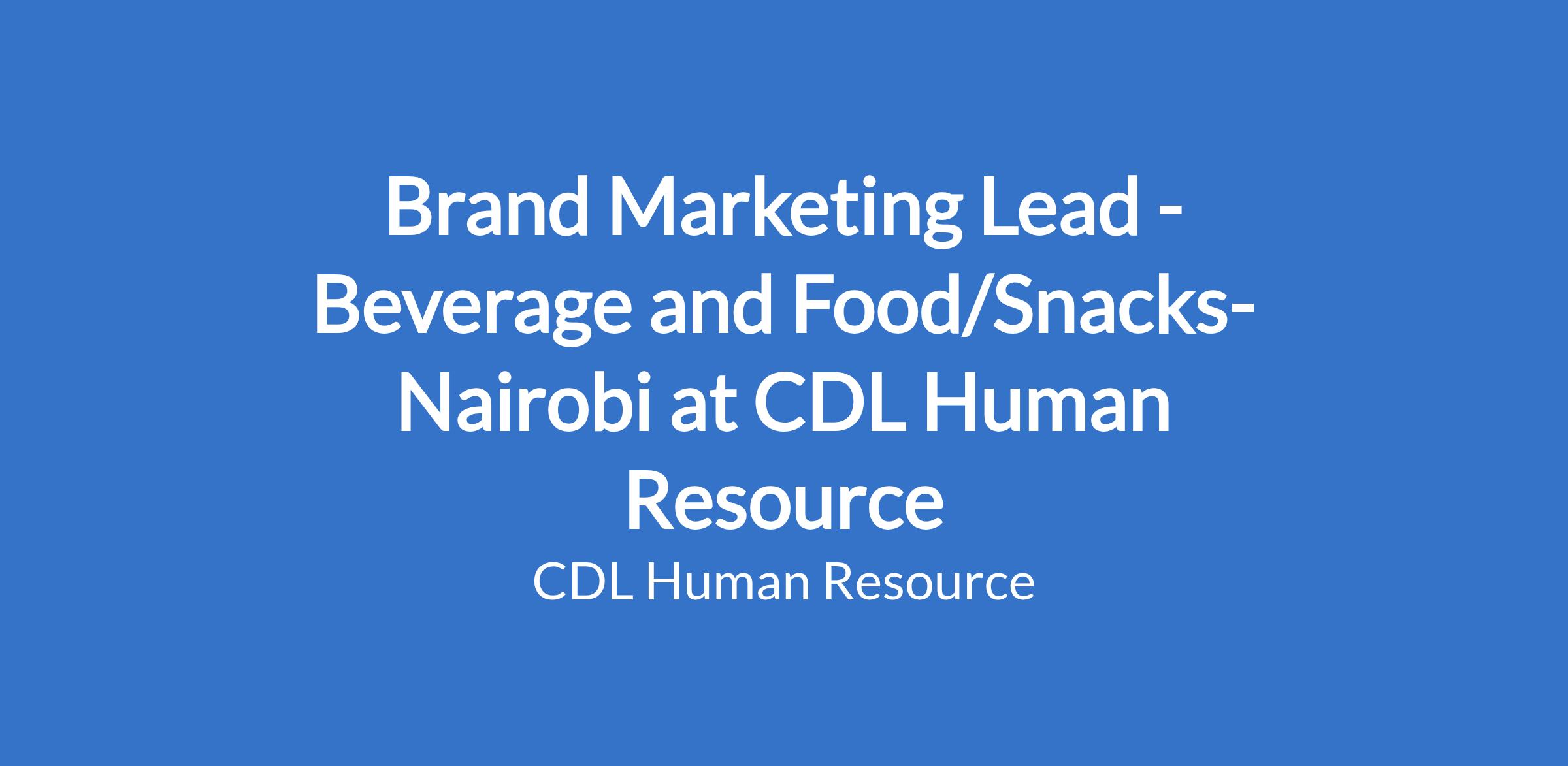 Brand Marketing Lead - Beverage and Food/Snacks- Nairobi at CDL Human Resource