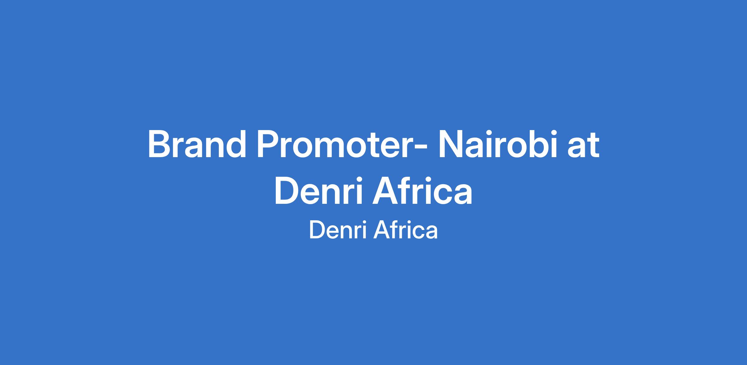 Brand Promoter- Nairobi at Denri Africa