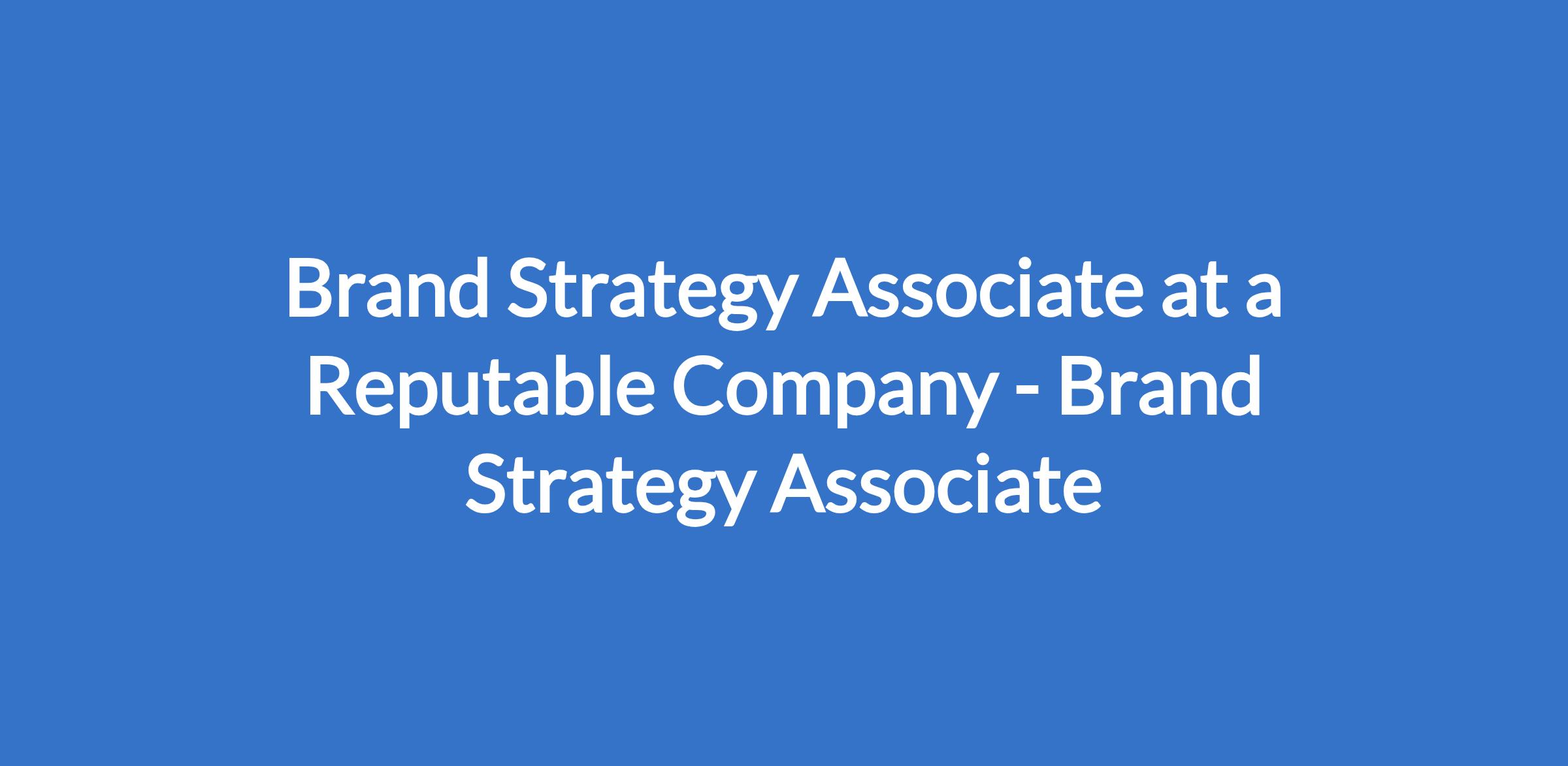 Brand Strategy Associate at a Reputable Company - Brand Strategy Associate