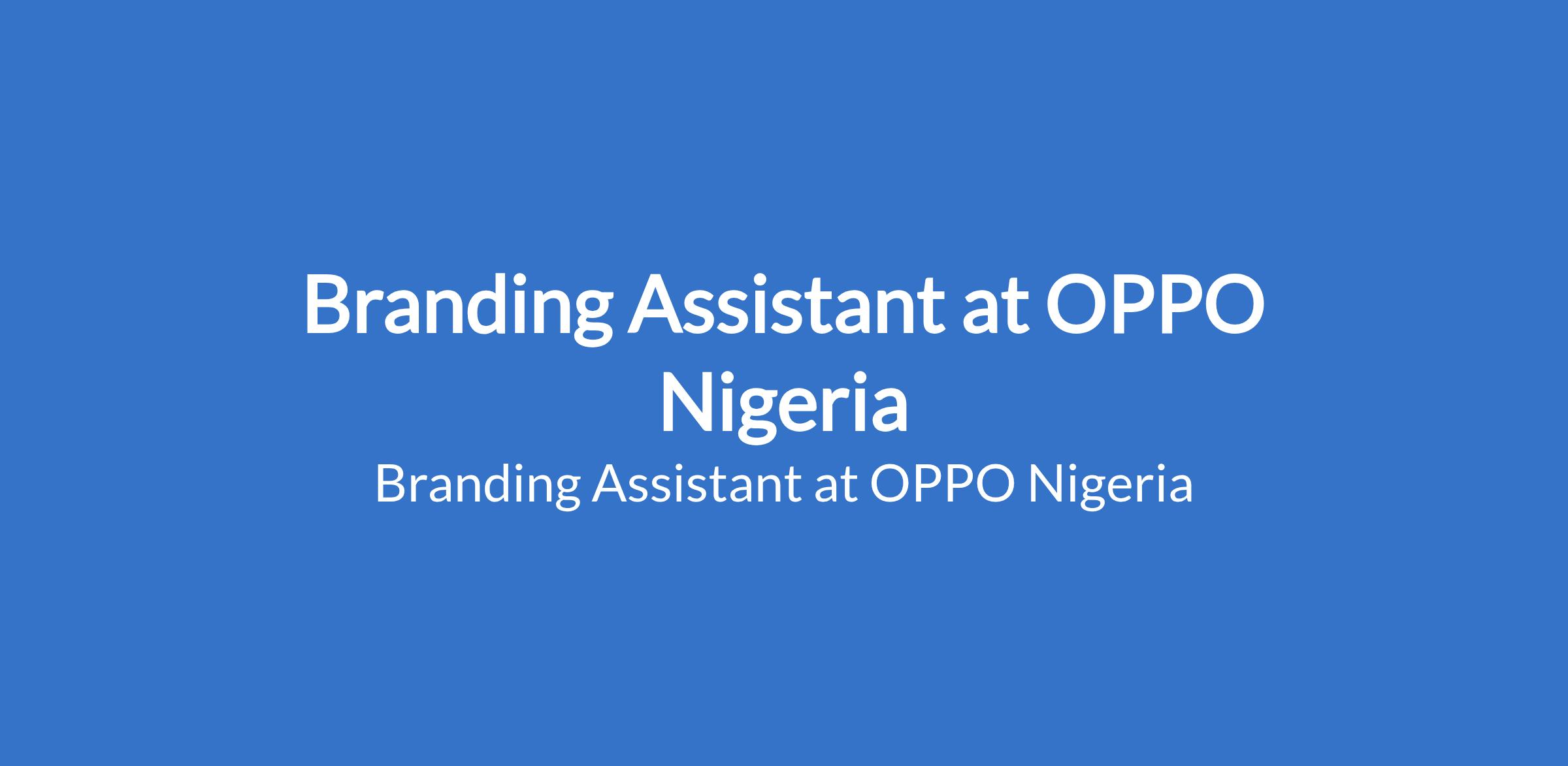 OPPO Nigeria is recruiting to fill the position of: Branding Assistant. The position is located in Lagos State. Salary: N70,000 - N85,000 monthly. Interested candidates should possess a BSc. / HND qualification in Marketing, Business Administration, or a related field with 12 years of experience in marketing logistics or branding support.