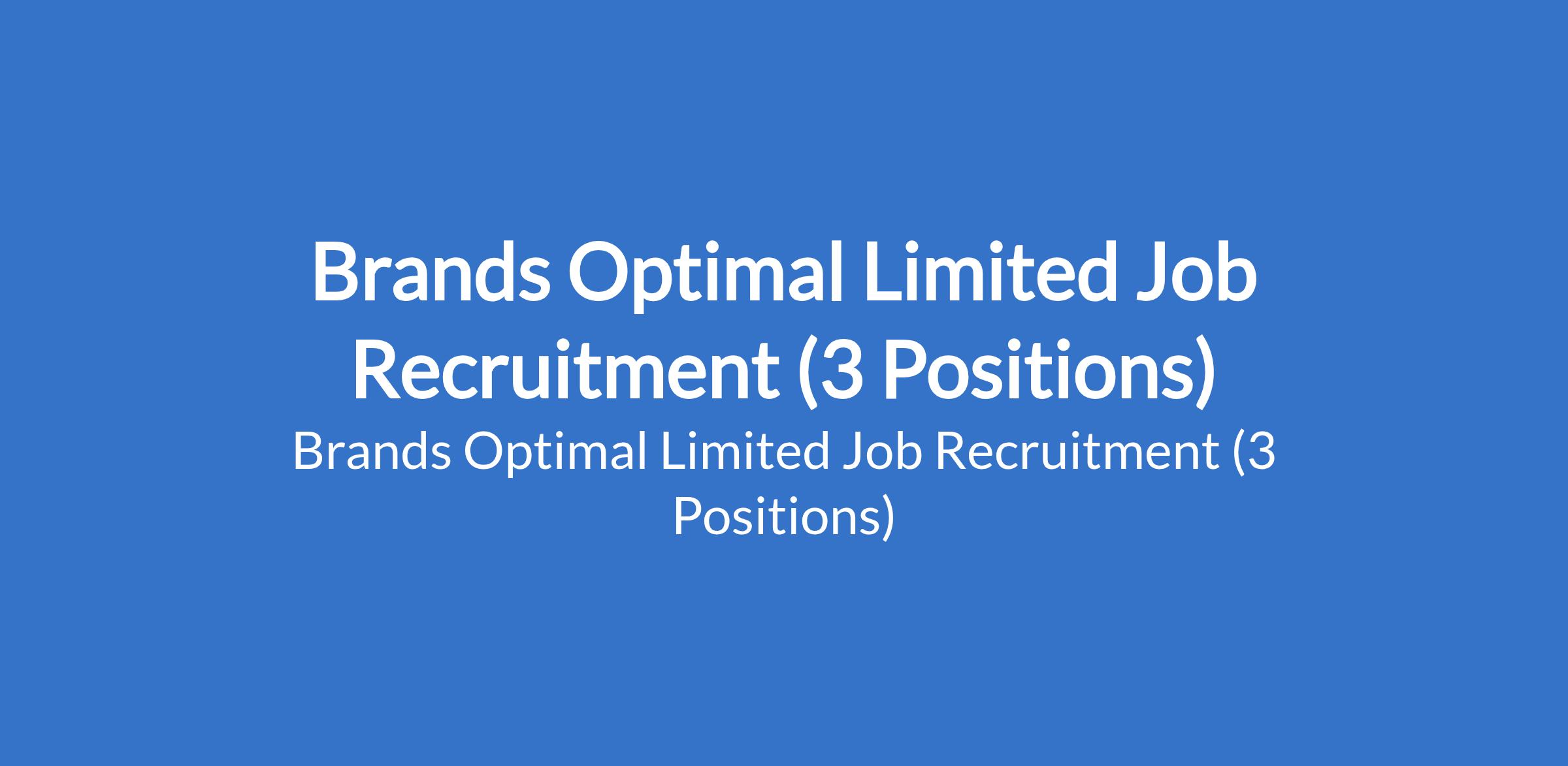 Brands Optimal Limited Job Recruitment (3 Positions)