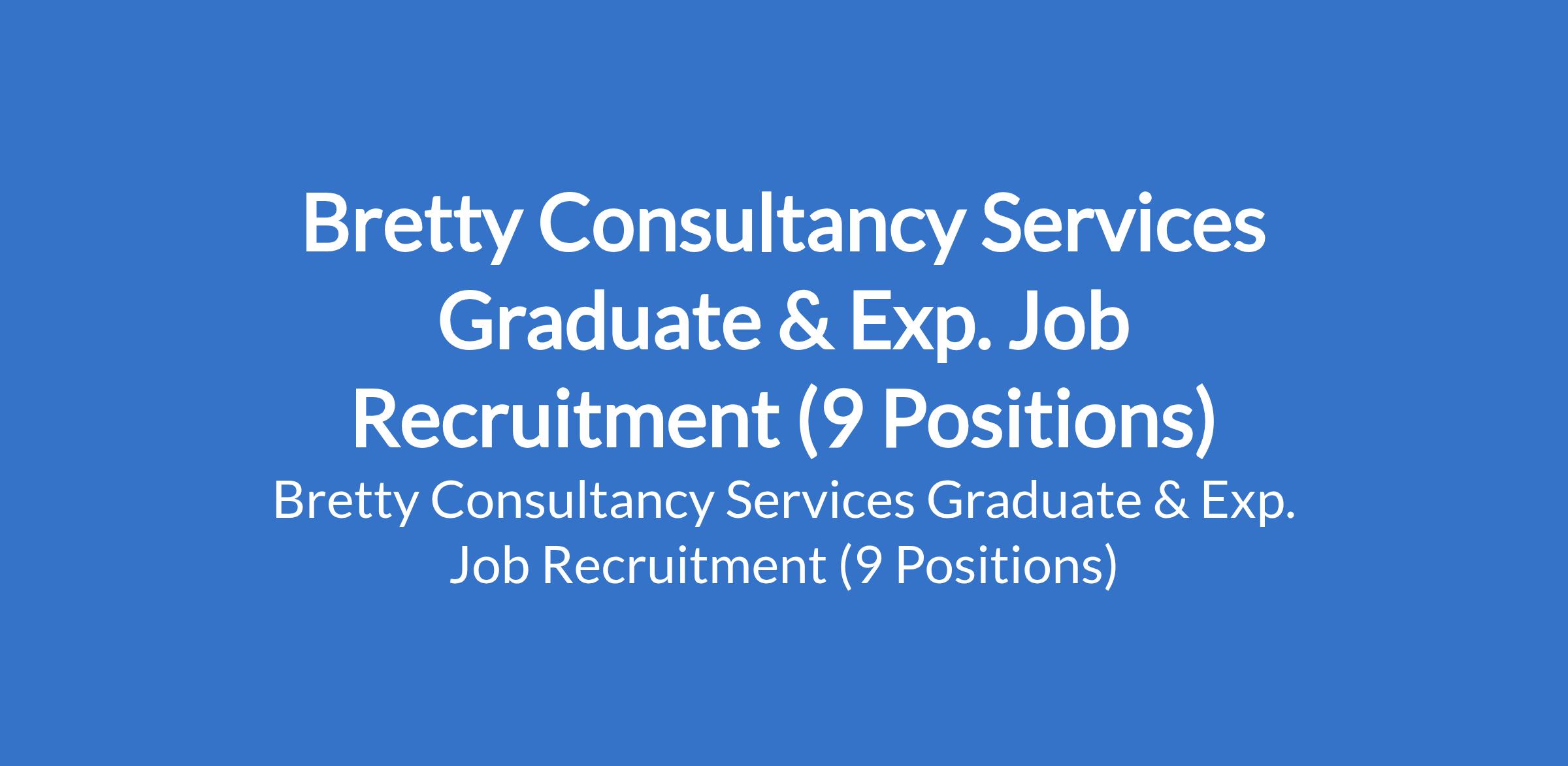 Bretty Consultancy Services is recruiting suitably qualified candidates to fill the following graduate & experienced positions in Abuja, Kano and Niger States: Graduate Engineer Trainee (GET), Safety Officer, Chief Security Officer, Roughing Mill Operator, CNC Operator, Main Pulpit Operator, Security Officer, Finishing Pulpit Operator, and Drill Machine Operator.