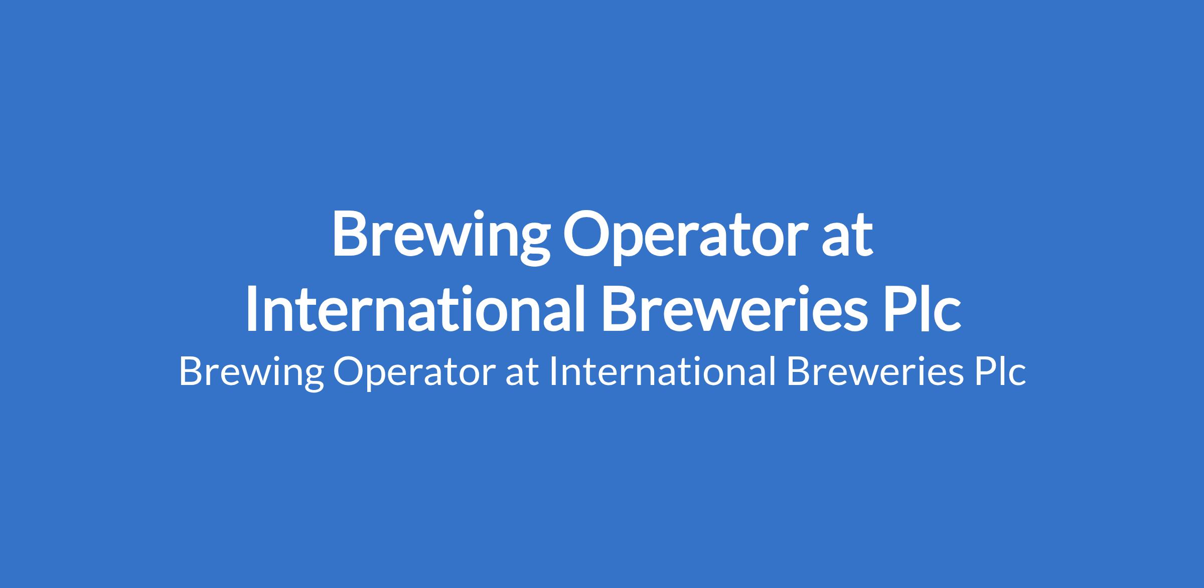 Brewing Operator at International Breweries Plc