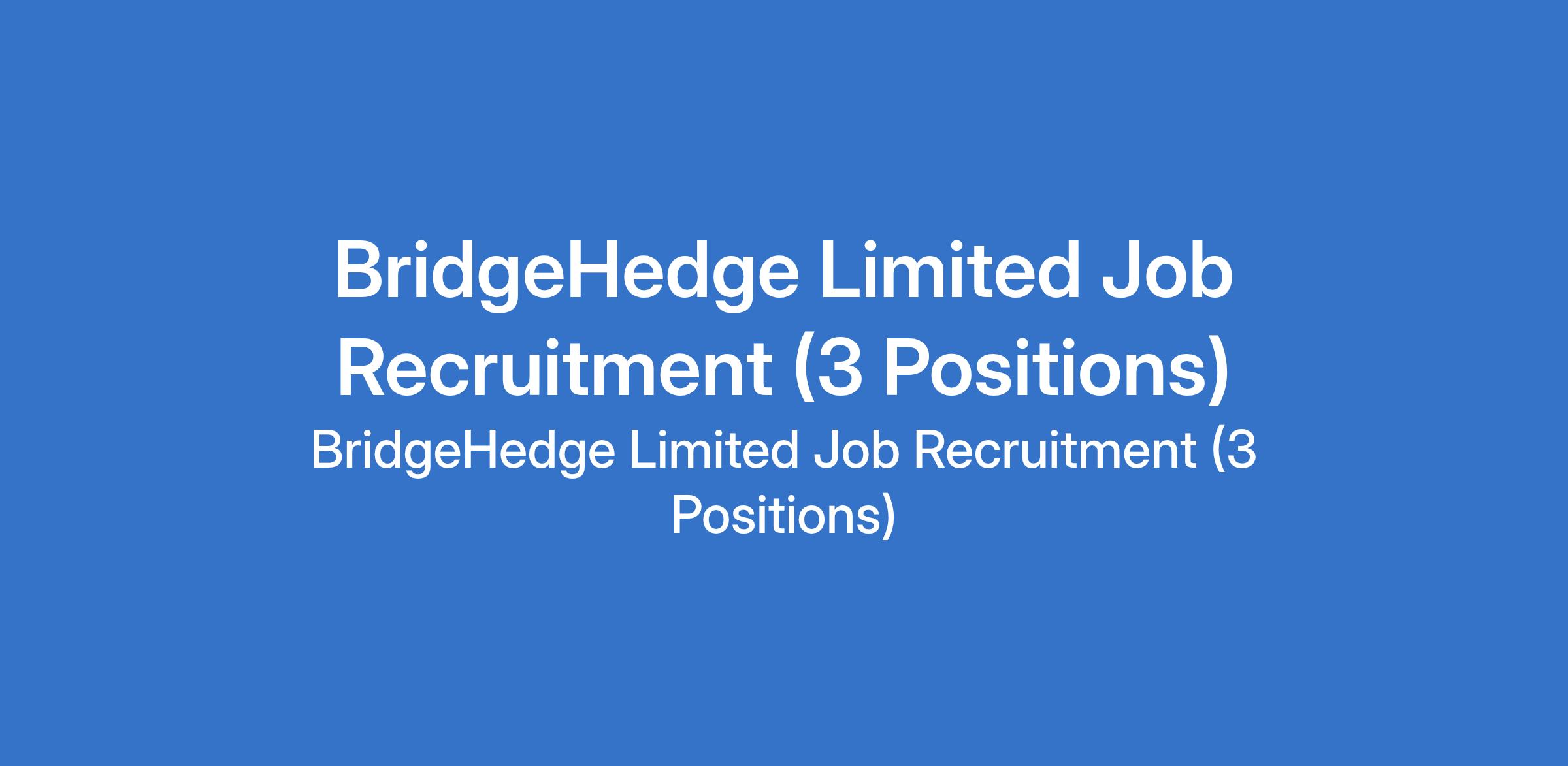 BridgeHedge Limited Job Recruitment (3 Positions)