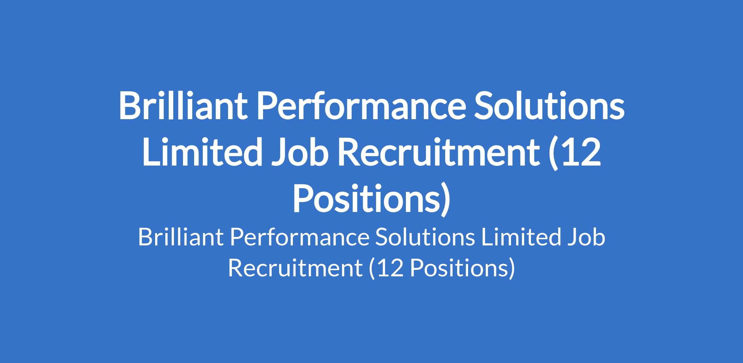 Brilliant Performance Solutions Limited is recruiting suitably qualified candidates to fill the following positions in Lagos State: Accountant, Civil Engineer, Project Manager, General Manager, Sales and Marketing Manager, HR Manager, Internal Auditor / Compliance Officer, Head of Operations, Civil Engineer, Quantity Surveyor, and Account Officer.