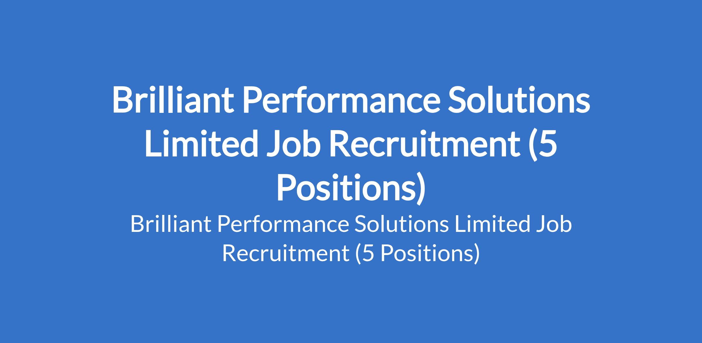 Brilliant Performance Solutions Limited is recruiting suitably qualified candidates to fill the following positions in Lagos State: Civil Engineer, Quantity Surveyor, Internal Auditor / Compliance Officer, Control / Compliance Officer, and Account Officer.