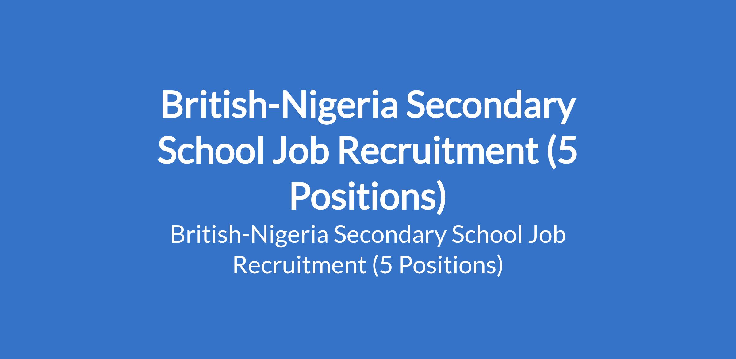 A British-Nigeria Secondary School is recruiting suitably qualified candidates to fill the following positions in Ogun State: Experienced School Account Officer, French Language Teacher, Biology / Agric Science, English Language / Literature Teacher and Experienced School Account Officer.