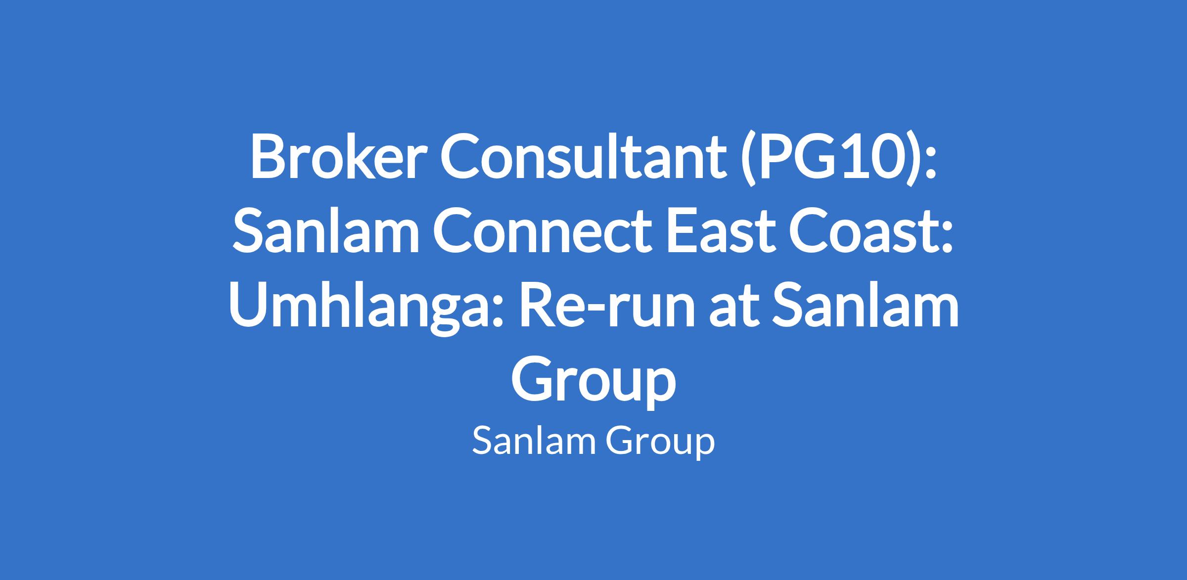 Broker Consultant (PG10): Sanlam Connect East Coast: Umhlanga: Re-run at Sanlam Group
