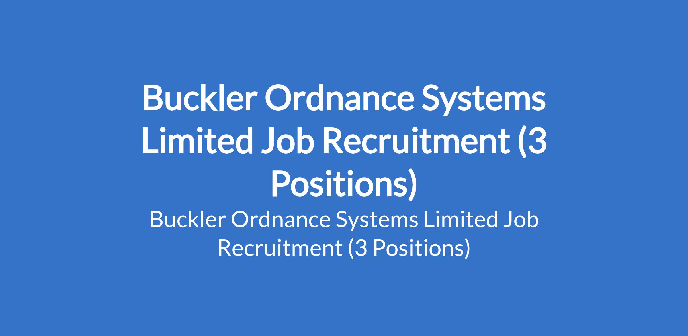 Buckler Ordnance Systems Limited Job Recruitment (3 Positions)