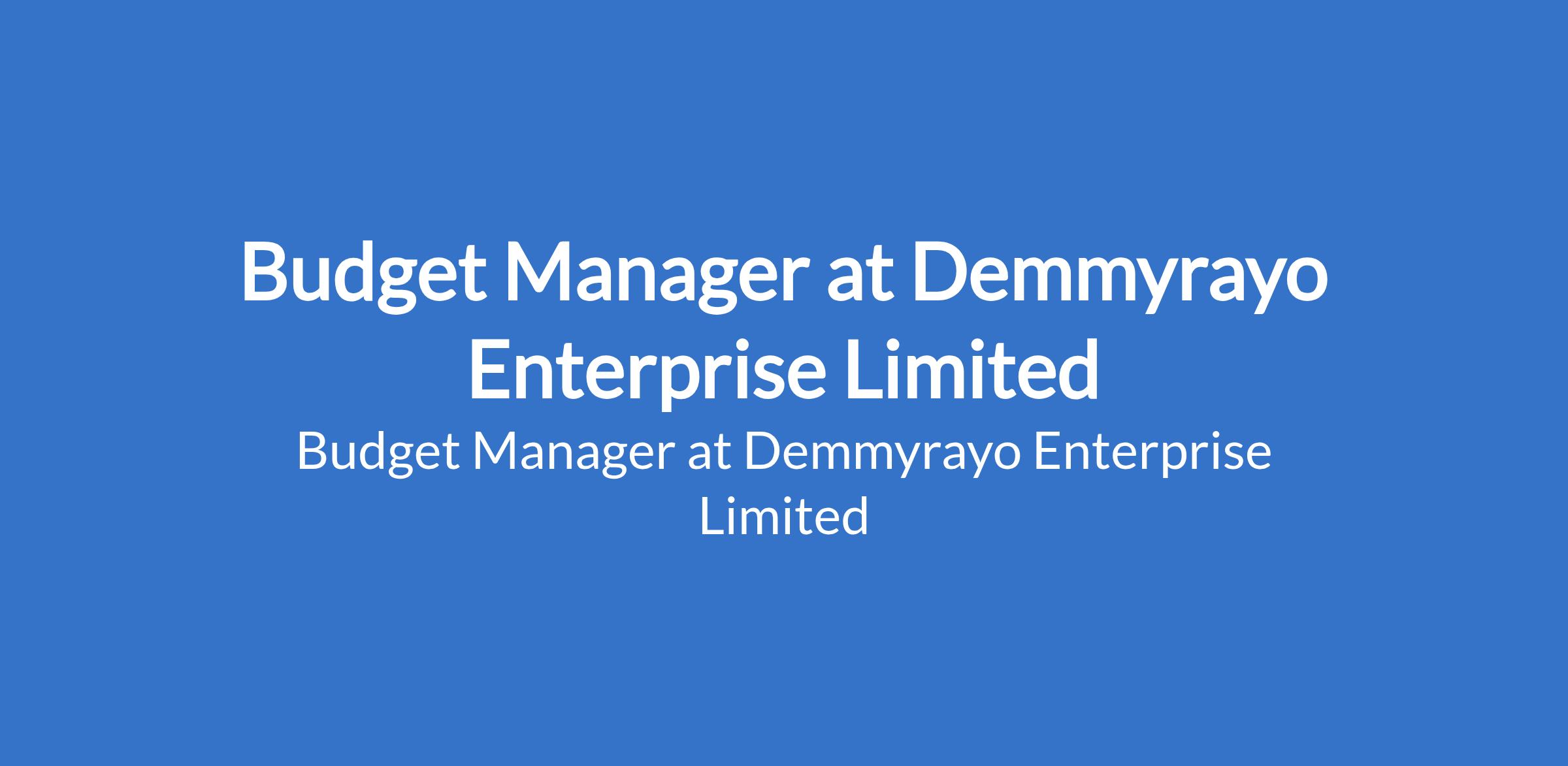 Demmyrayo Enterprise Limited is recruiting to fill the position of: Budget Manager. The position is located in Maryland, Lagos State. Salary: N150,000 - N220,000 / month. Interested candidates should possess an OND qualification with proven work experience as a Budget Manager.