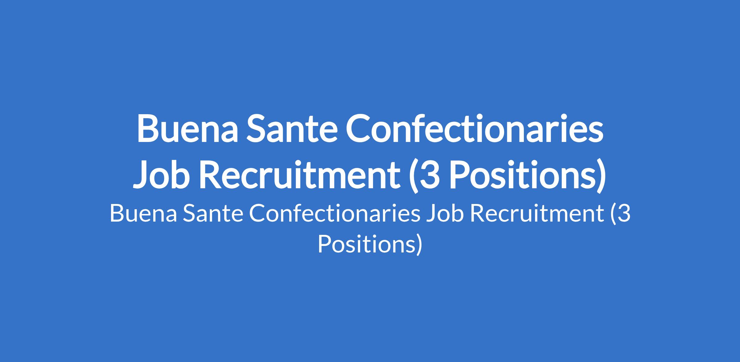 Buena Sante Confectionaries Job Recruitment (3 Positions)