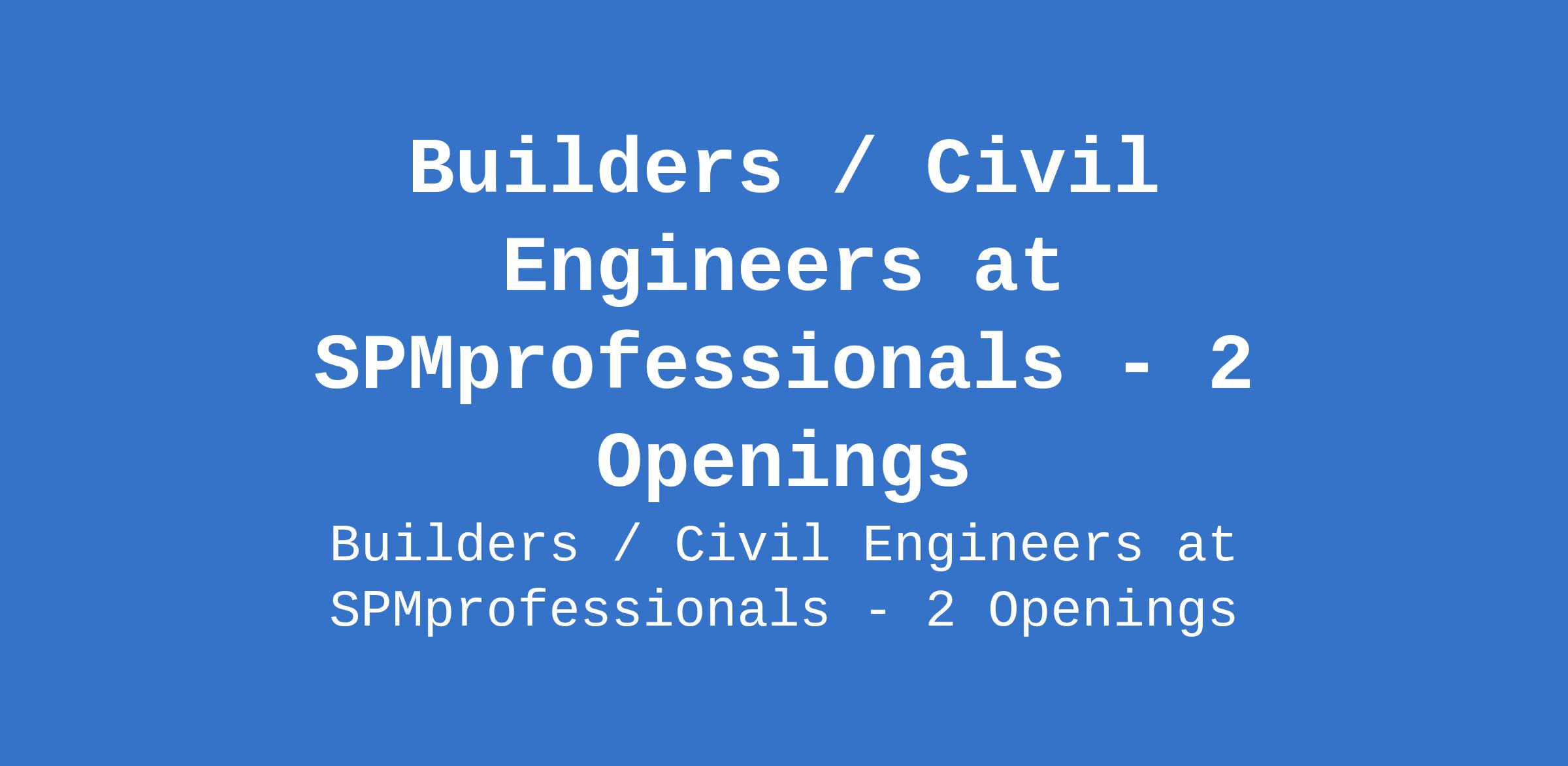 Builders / Civil Engineers at SPMprofessionals - 2 Openings