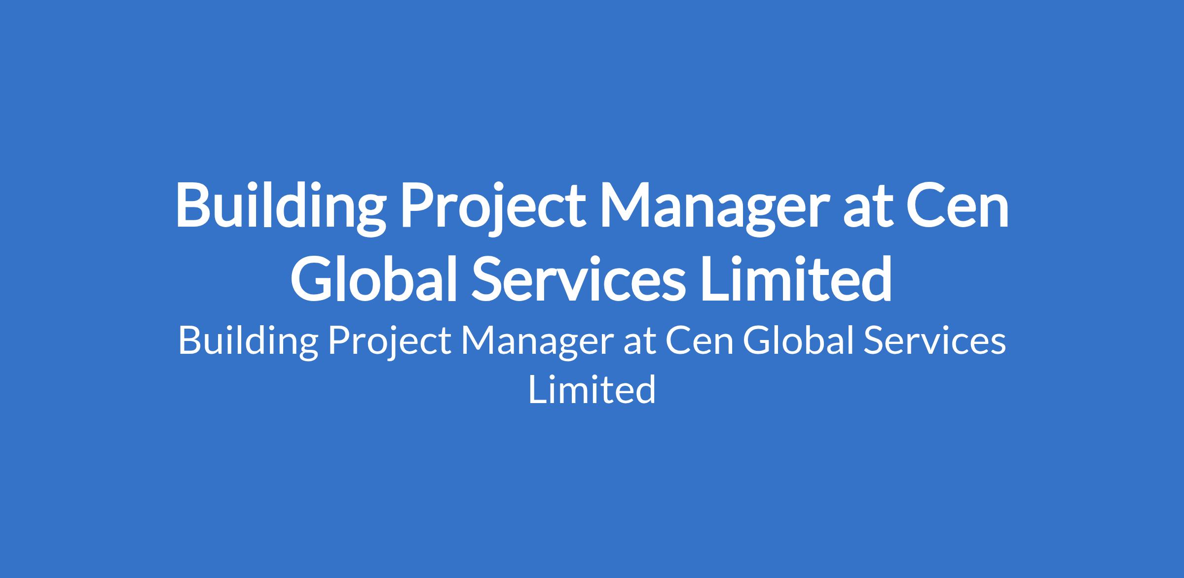 Cen Global Services Limited is recruiting to fill the position of: Building Project Manager. The position is located in Port Harcourt, Rivers State. Interested candidates should possess a Bachelor's Degree in Civil Engineering, Building Technology, Architecture, or related field with 58 years experience in building / construction project management and must be based in Port Harcourt.
