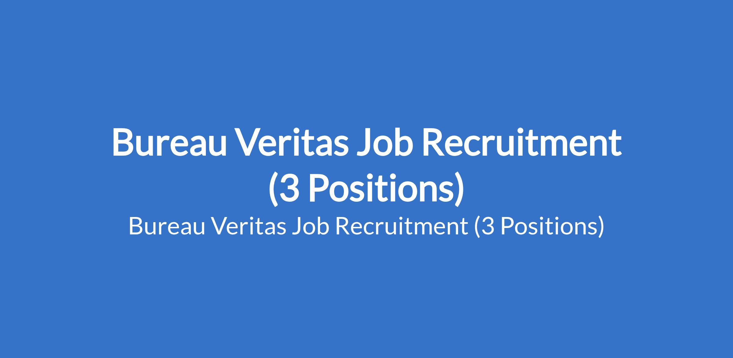 Bureau Veritas Job Recruitment (3 Positions)