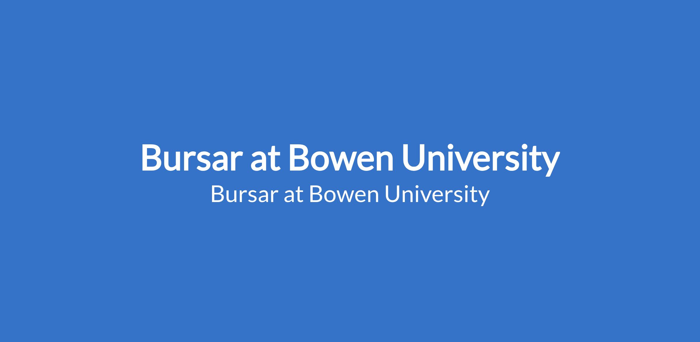 Bowen University invites applications for the position of: Bursar. The position is located in Iwo, Osun State. Interested candidates should possess a good Honours Degree with a minimum of Second-Class Lower Division in Accounting, Finance, Economics or any related discipline from a recognized institution with at least fifteen (15) years of relevant post-graduation experience, in university administration or similar institution.
