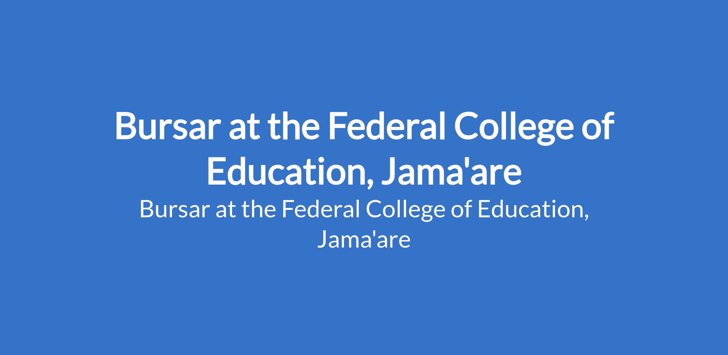 Federal College of Education, Jama'are is recruiting to fill the position of: Bursar. The position is located in Bauchi State. Interested candidates should possess a good honours Degree, or Higher National Diploma (HND), or its equivalent in Accountancy or Finance, from a recognized institution of higher learning with at least Twenty One (21) years cognate experience plus full registration with a recognized Professional Accounting Body; possession of relevant Masters Degree from a recognized institution of higher learning with at least Eighteen (18) years of cognate experience.