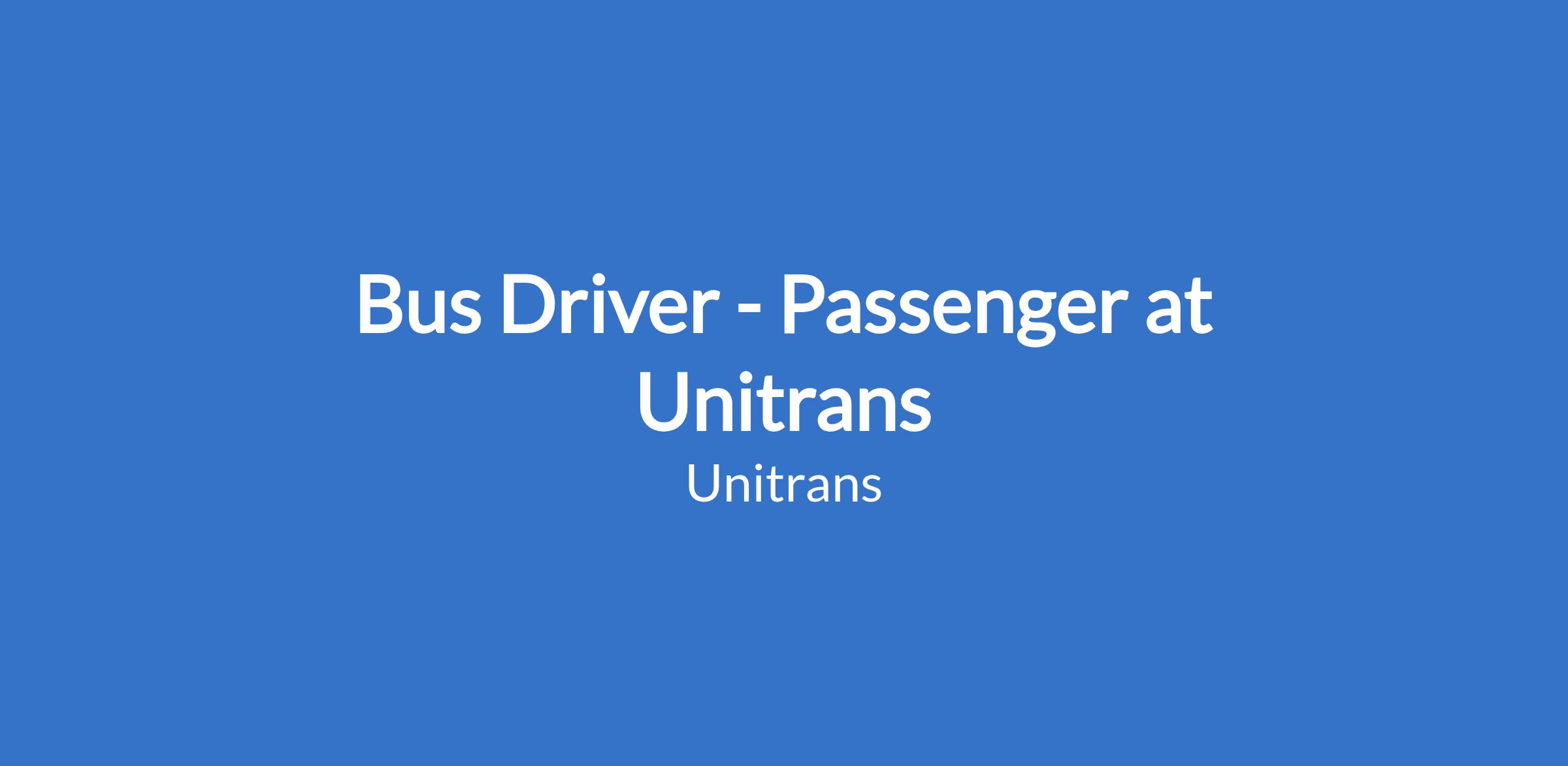 Unitrans is seeking to employ Professional Bus Drivers with proven experience. Drives a bus to transport passengers on scheduled services over established routes. Controls lighting, heating and ventilation for the passengers.