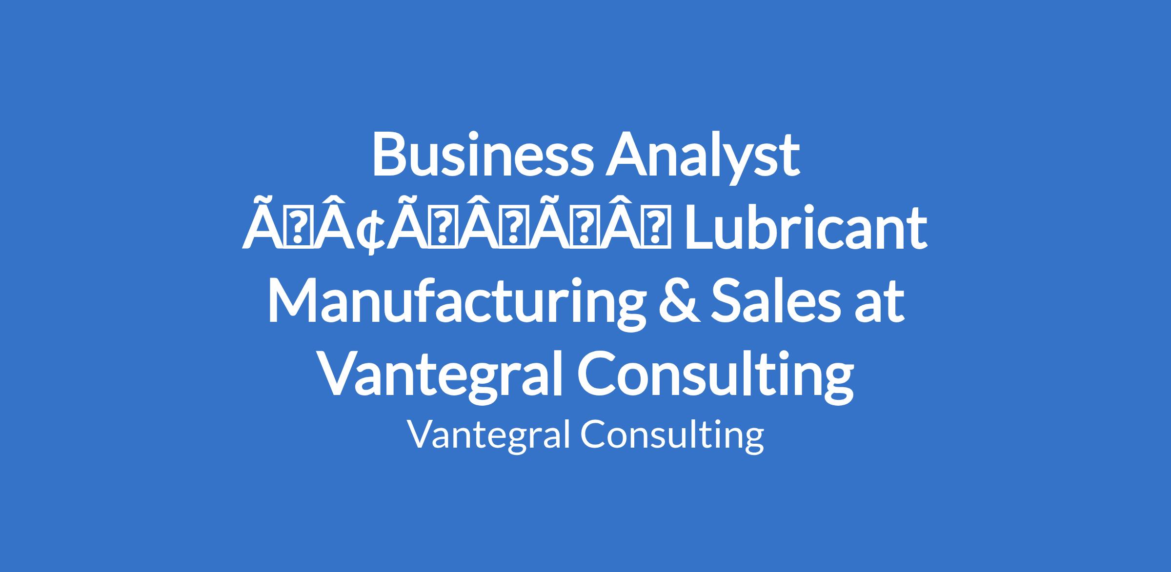 Business Analyst âÃÂàLubricant Manufacturing & Sales at Vantegral Consulting