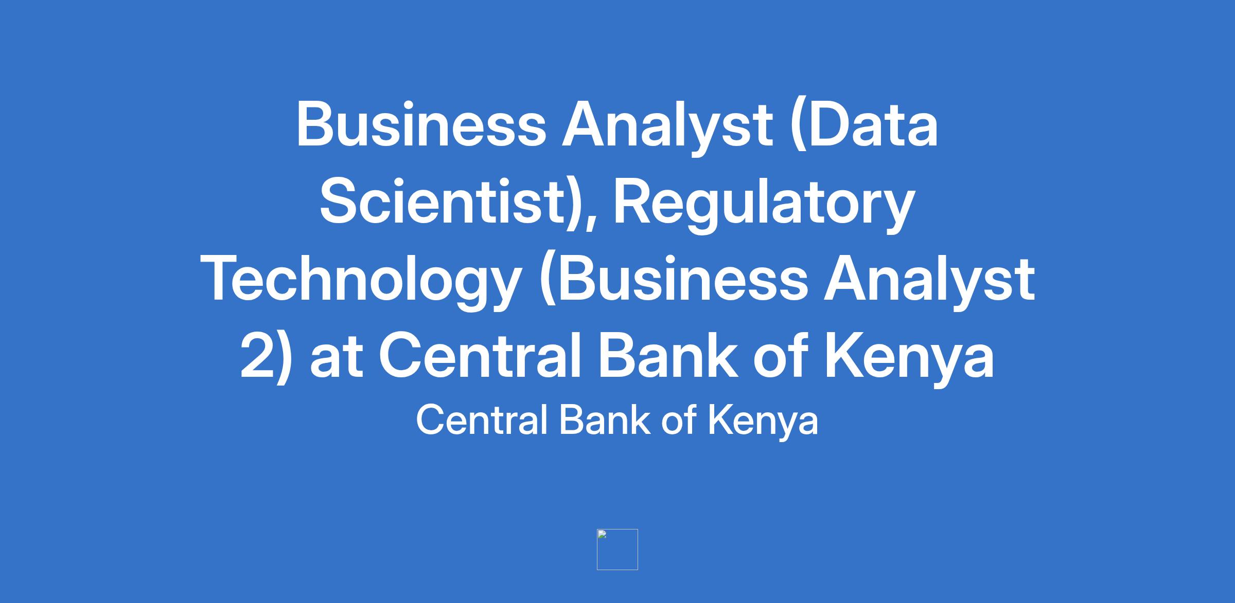 Business Analyst (Data Scientist), Regulatory Technology (Business Analyst 2) at Central Bank of Kenya