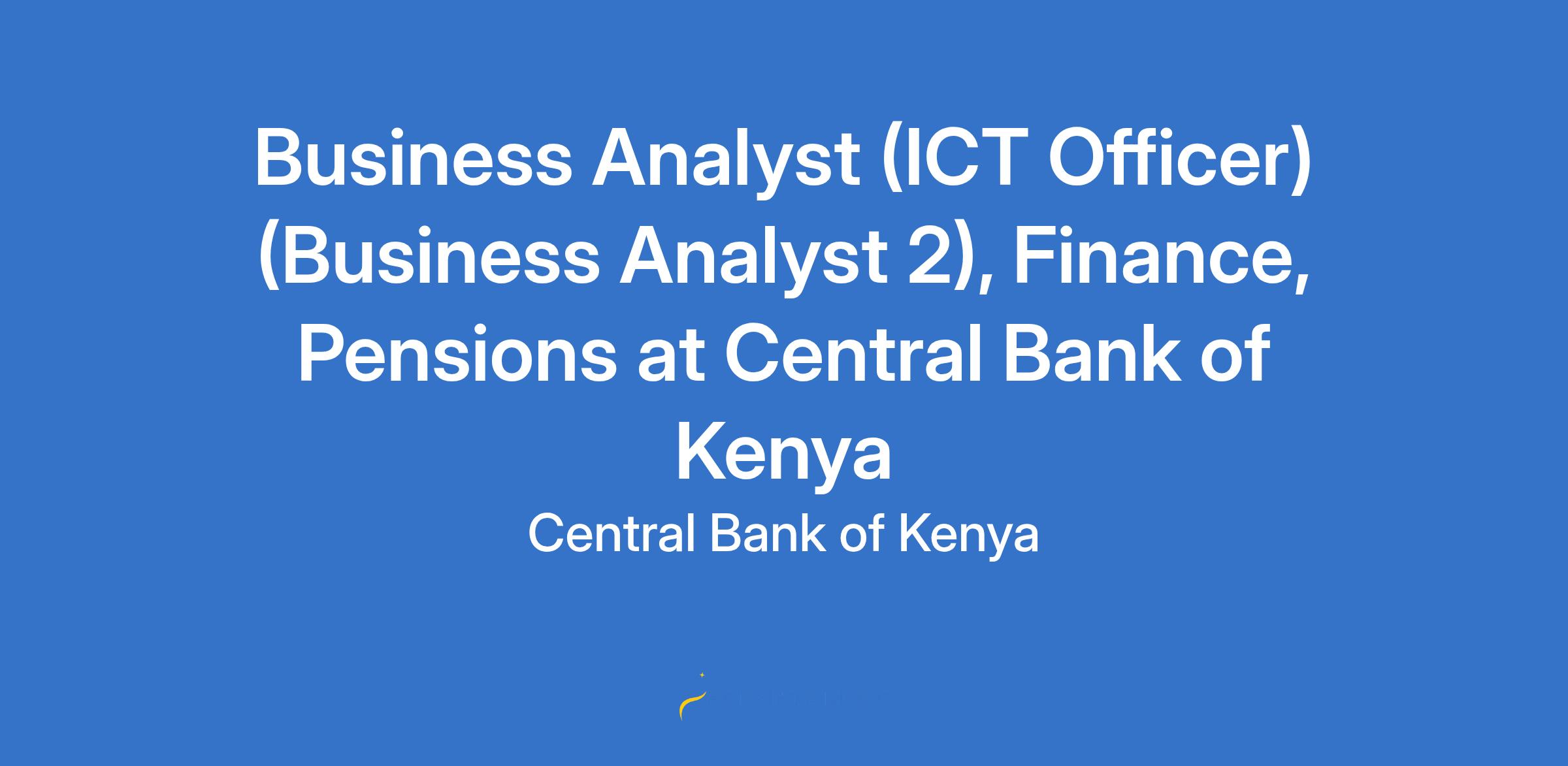 Business Analyst (ICT Officer) (Business Analyst 2), Finance, Pensions at Central Bank of Kenya