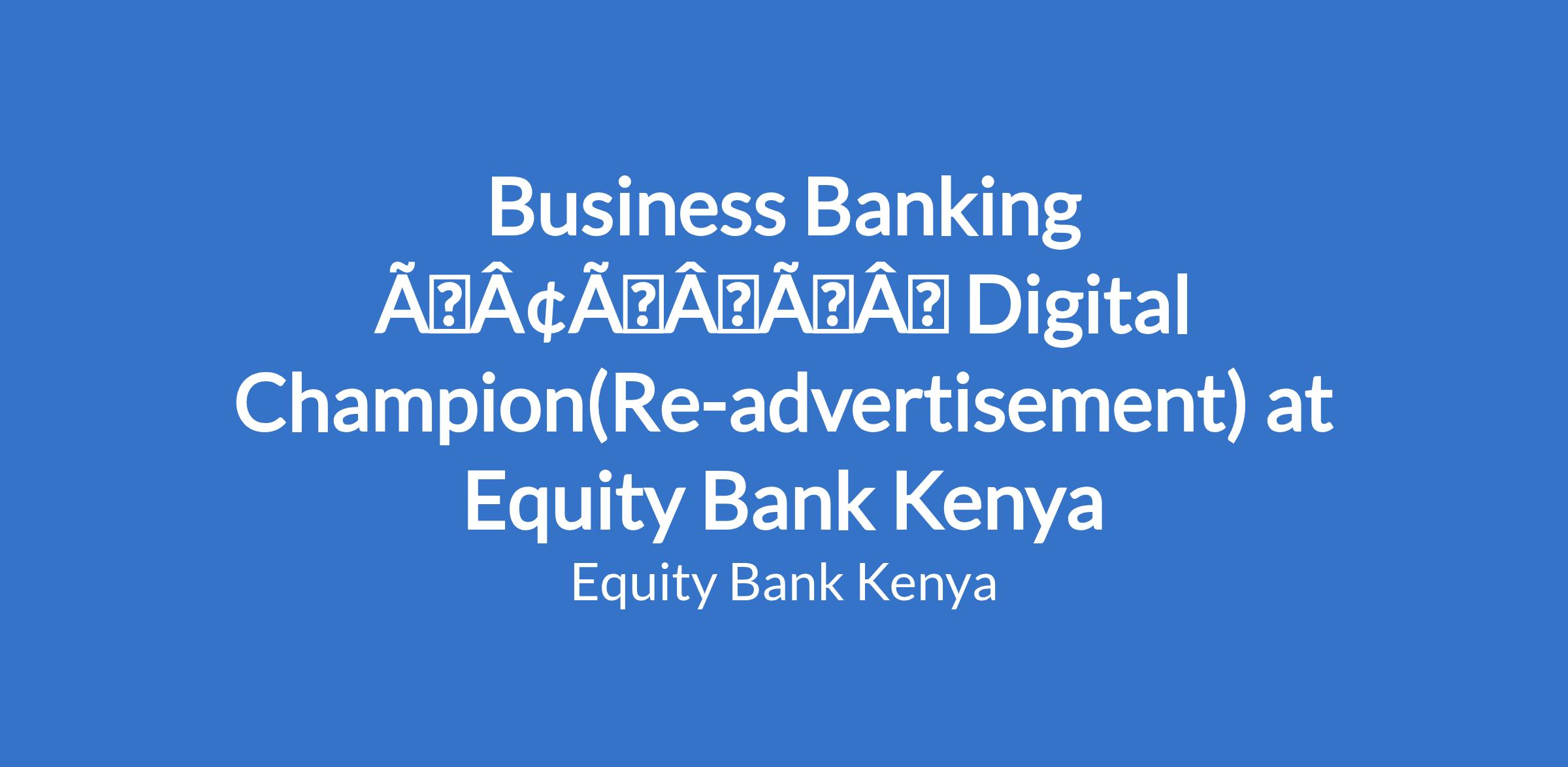 Business Banking âÃÂàDigital Champion(Re-advertisement) at Equity Bank Kenya