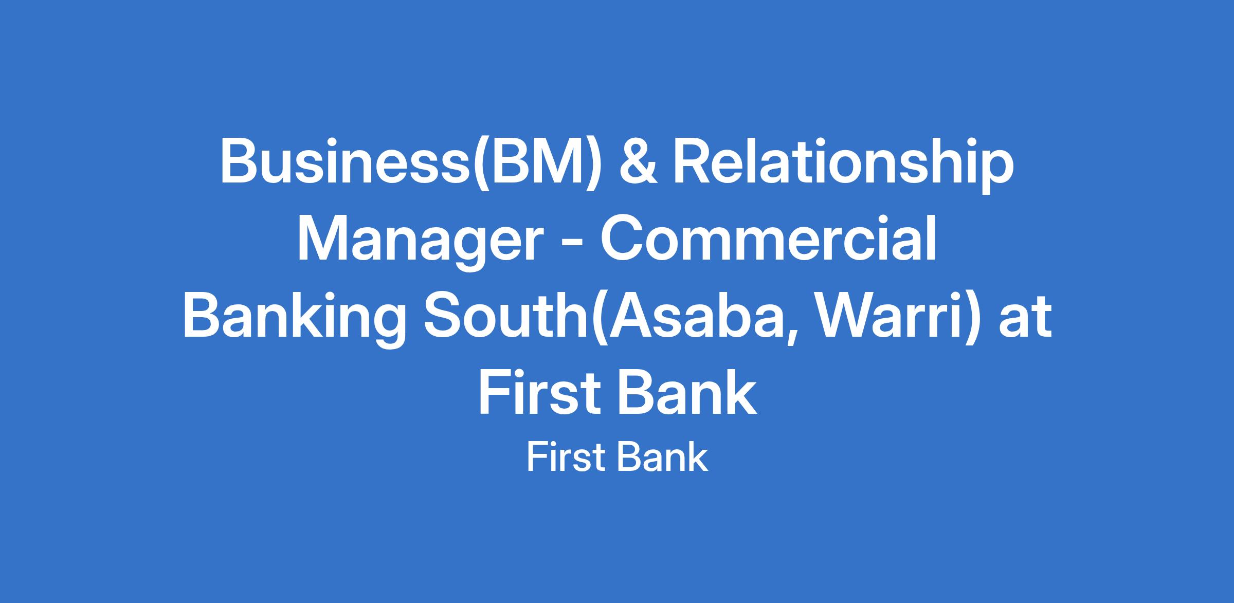 Business(BM) & Relationship Manager - Commercial Banking South(Asaba, Warri) at First Bank