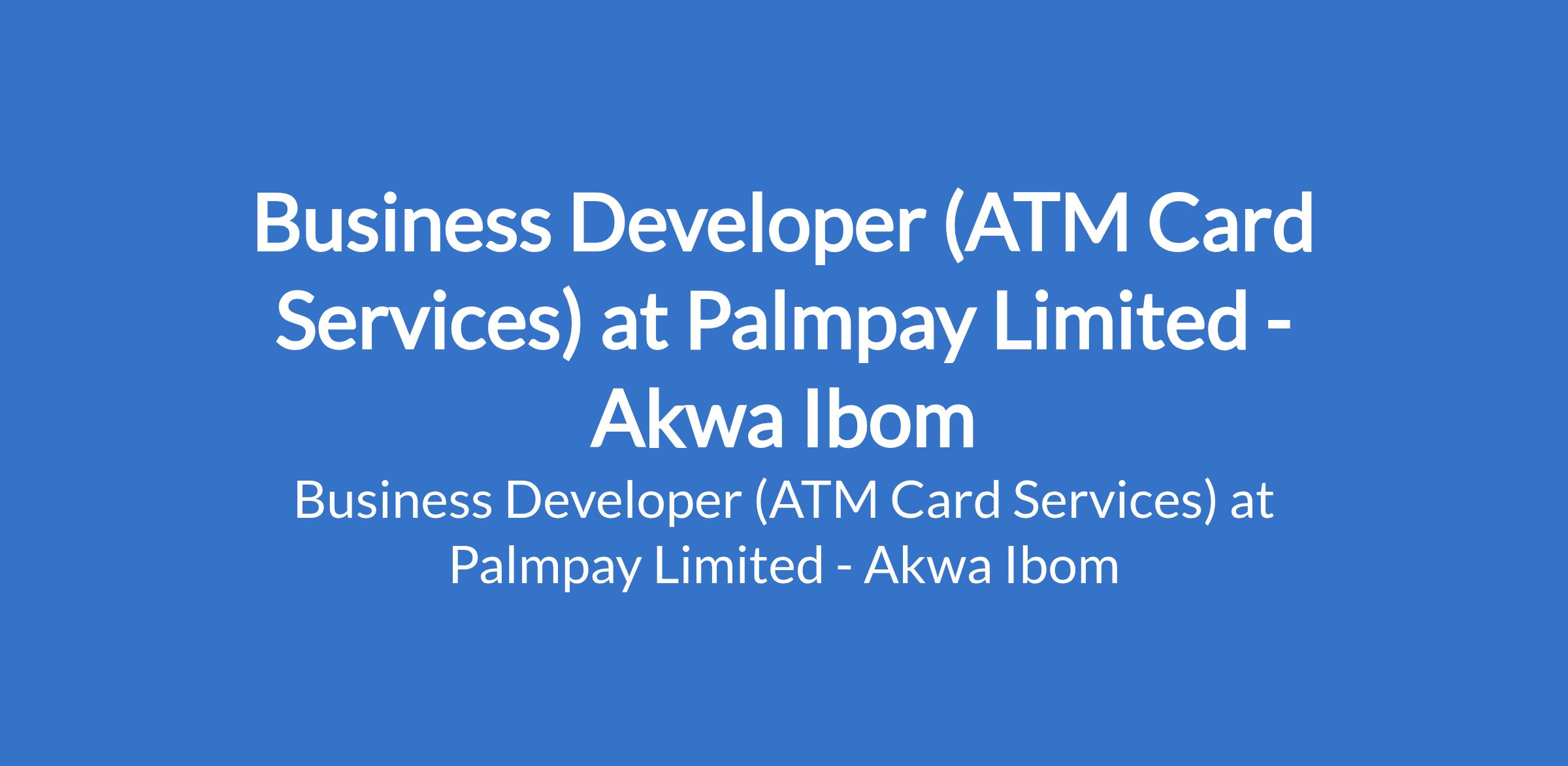 Palmpay Limited is recruiting to fill the position of: Business Developer (ATM Card Services). The position is located in Uyo, Akwa Ibom State. Salary: N70,000 per month. Interested candidates should possess an OND in Business, Marketing, Finance, or related fields.