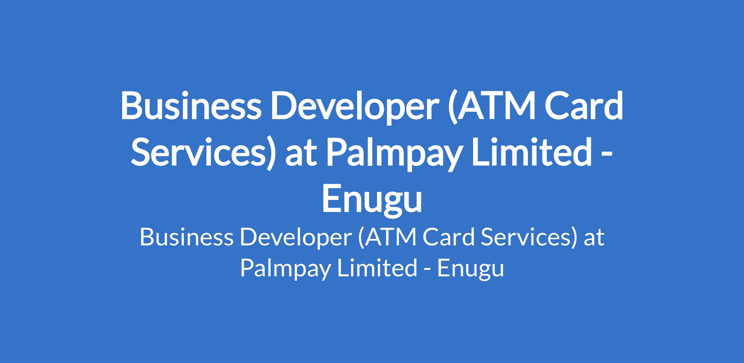 Palmpay Limited is recruiting to fill the position of: Business Developer (ATM Card Services). The position is located in Enugu State. Salary: N70,000 per month. Interested candidates should possess an OND in Business, Marketing, Finance, or related fields.