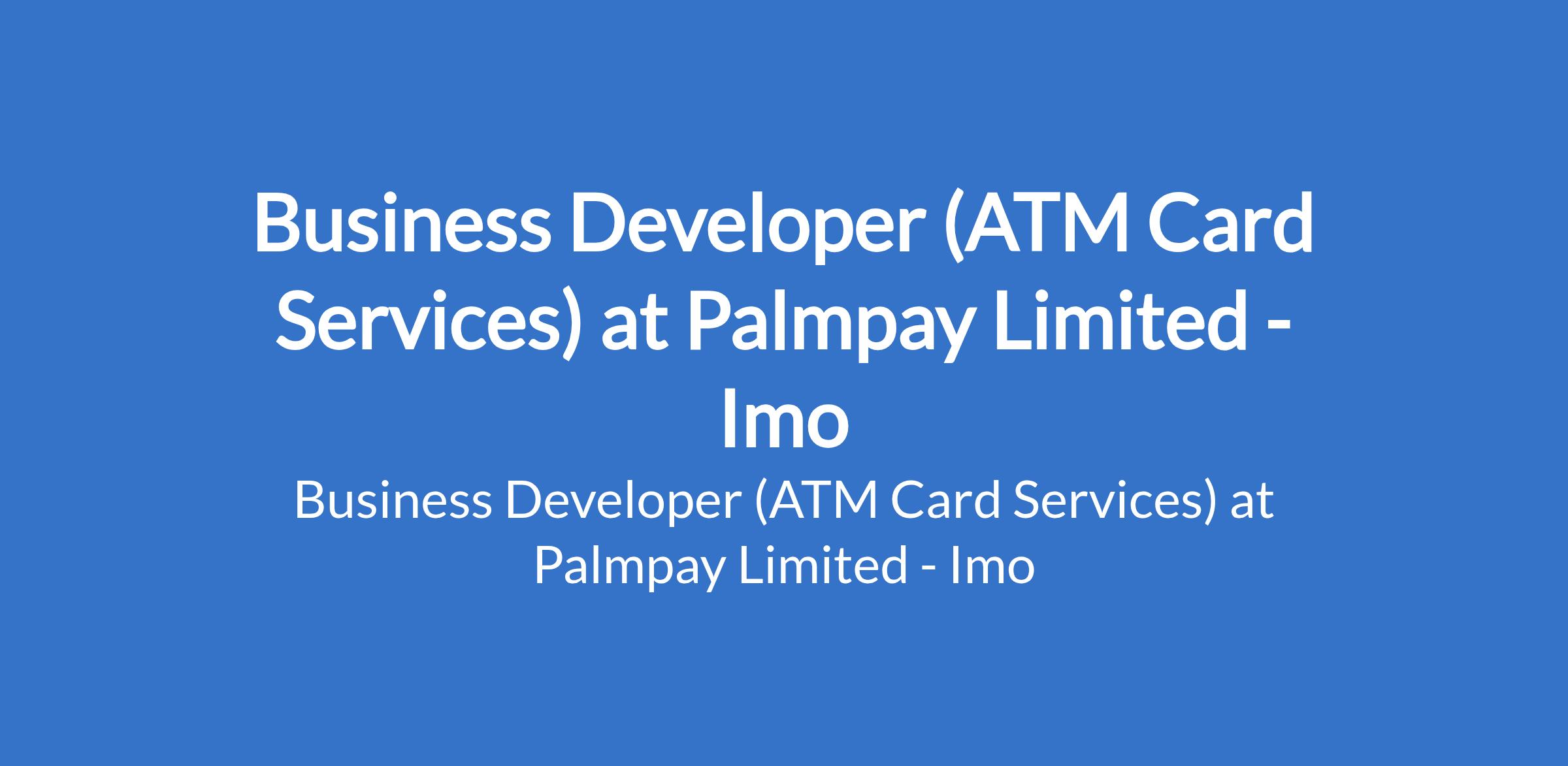 Palmpay Limited is recruiting to fill the position of: Business Developer (ATM Card Services). The position is located in Owerri, Imo State. Salary: N70,000 per month. Interested candidates should possess an OND in Business, Marketing, Finance, or related fields.